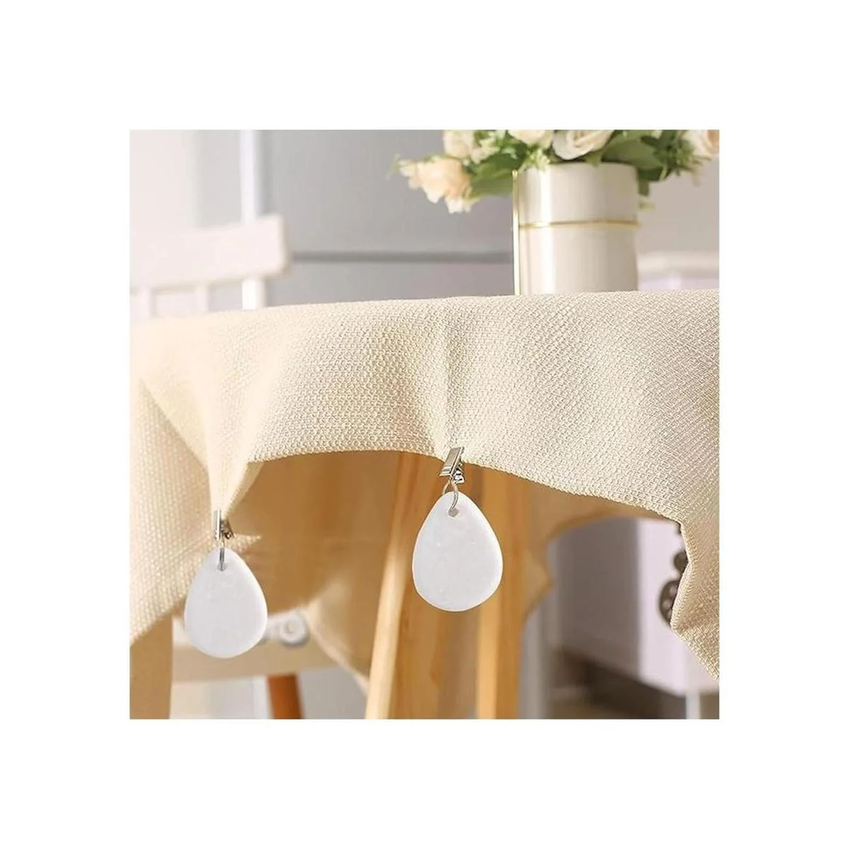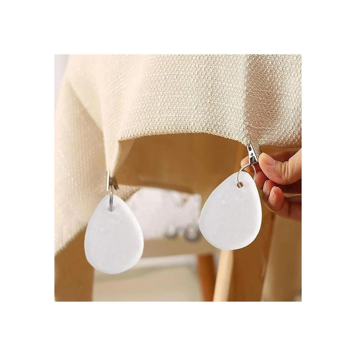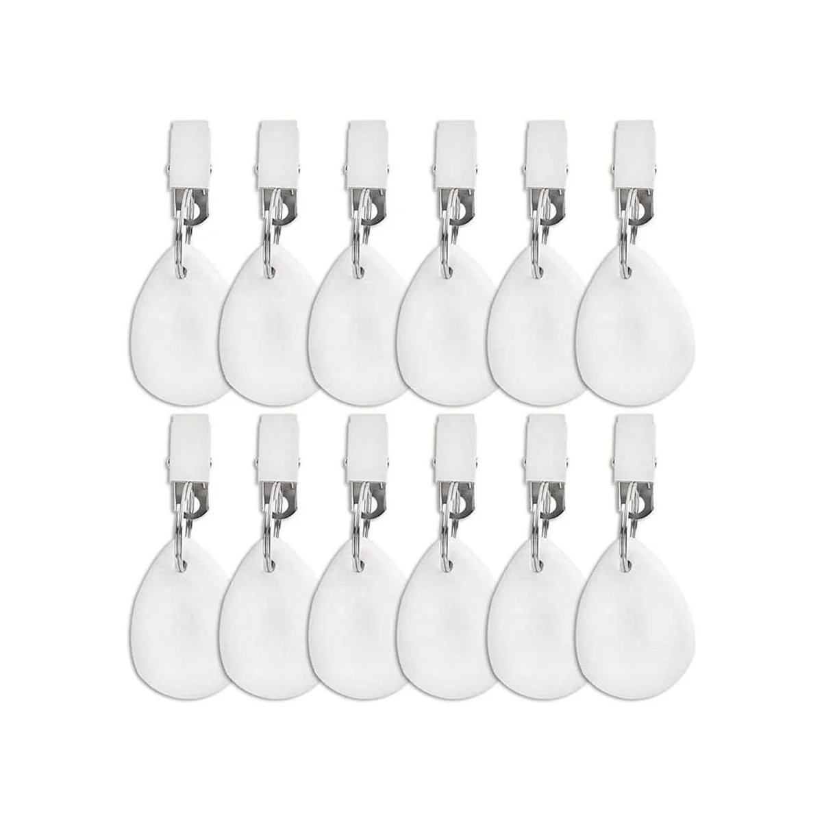 DEAYOU 12 piezas de peso para mantel de mesa, colgante de lágrima con clip de metal para pícnic al aire libre, fiestas, bodas, hogar, restaurante, decoración blanco
