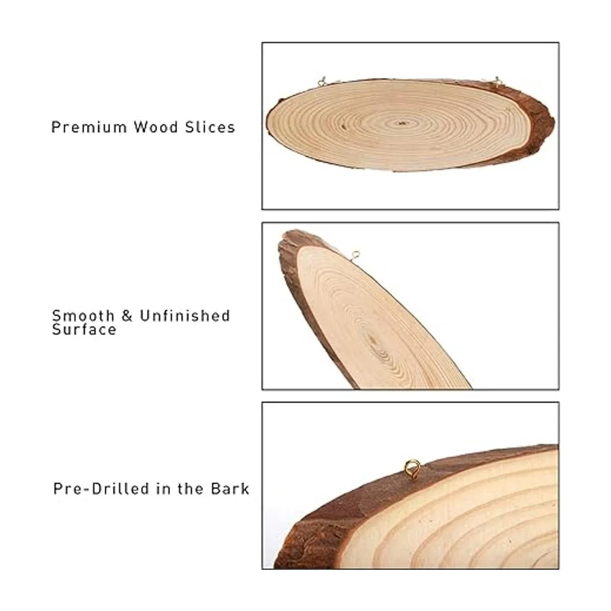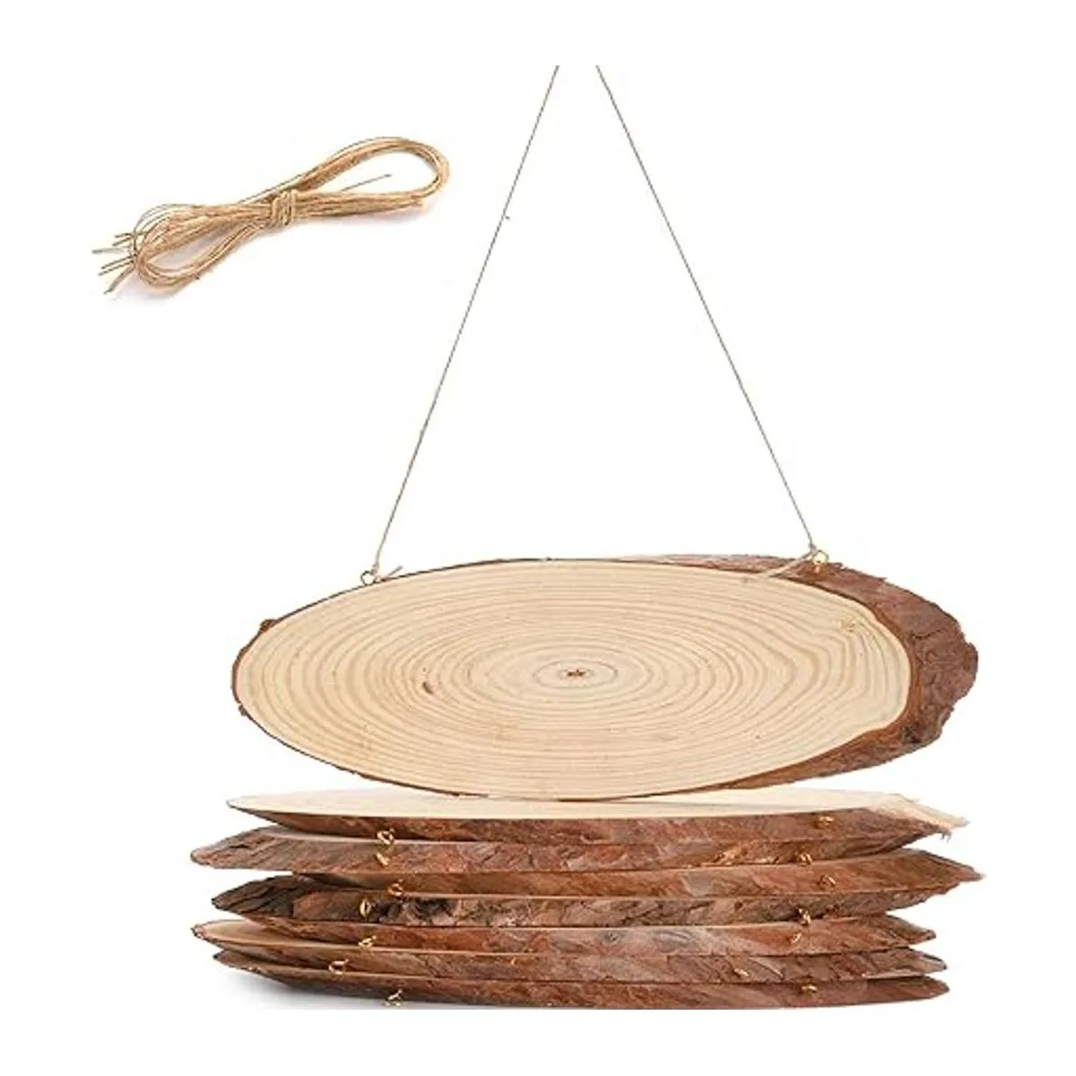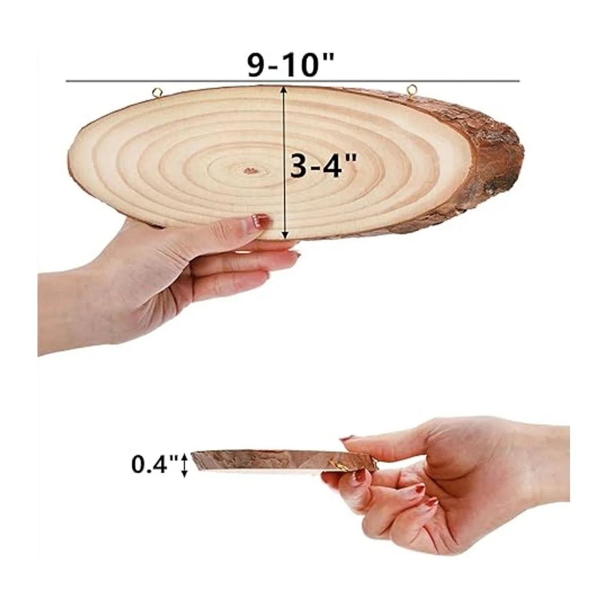 DEAYOU Paquete de 8 rebanadas de madera natural, manualidades de madera sin terminar con corteza, letrero de madera con anillo de ojo pequeño, placa de losa de madera para centro de mesa, bricolaje, pintura, adorno, 910 pulgadas de largo x 34 pulgadas de ancho, ovalado