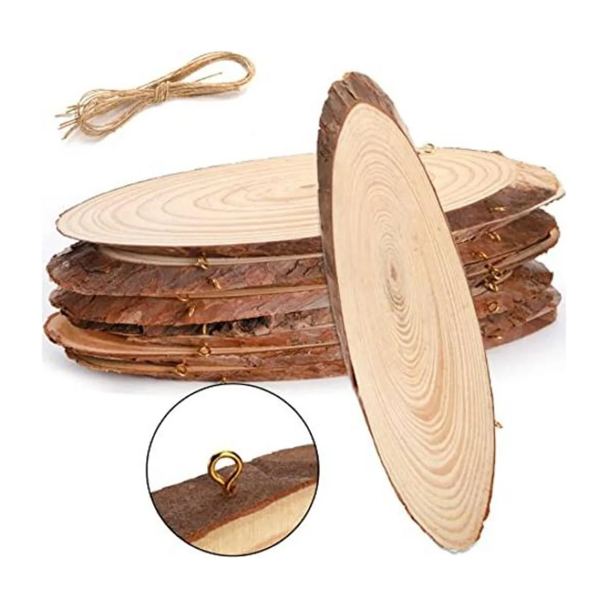 Diseño de anillo colgante y fácil de usar: nuestras pequeñas placas de madera están preinstaladas con anillos de ojo, preservando la forma original de las piezas de madera. Simplemente se fija con cuerdas de yute para colgar fácilmente. Puedes empezar a crear en la superficie y hacer adornos