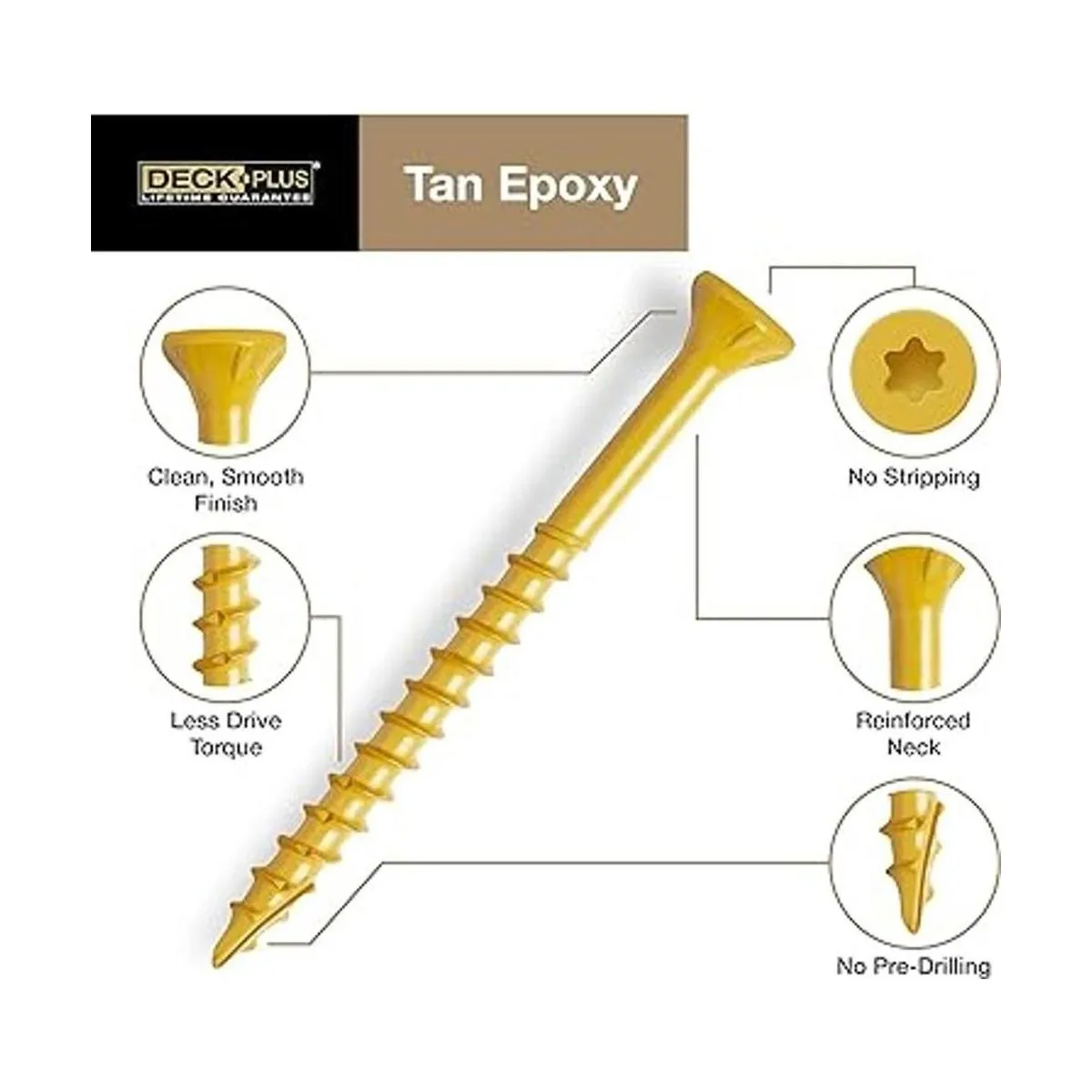 Deck Plus 48411 Tornillos de madera 8 x 158 pulgadas, color bronceado, caja de 1 libra