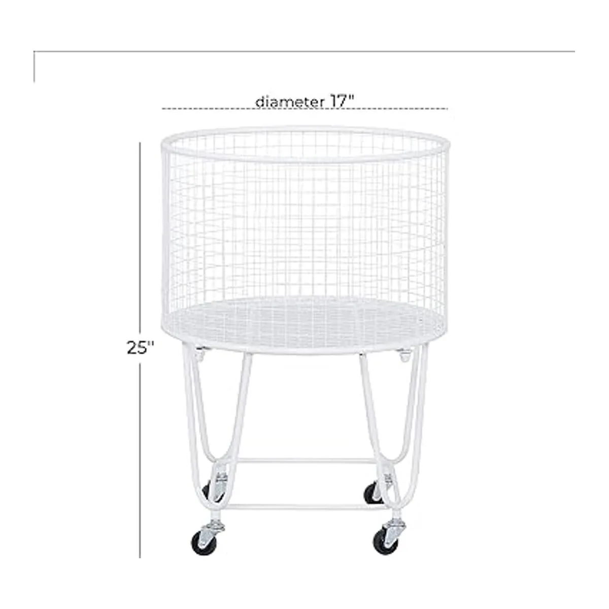Deco 79 Carrito de almacenamiento redondo de metal con ruedas, 18 x 18 x 24 pulgadas, blanco