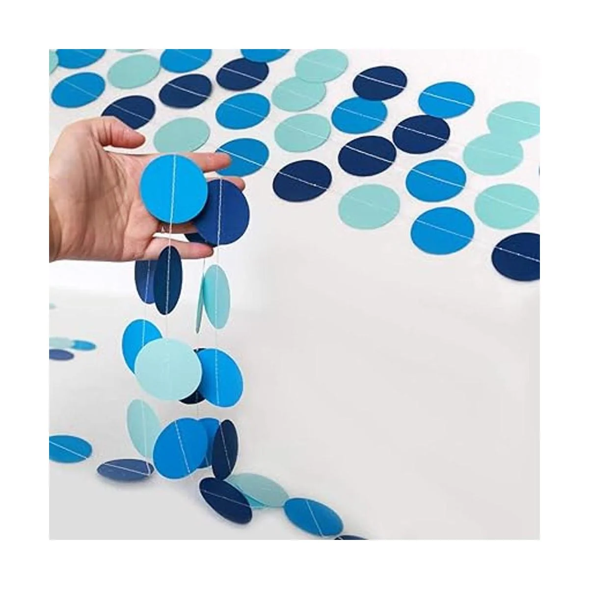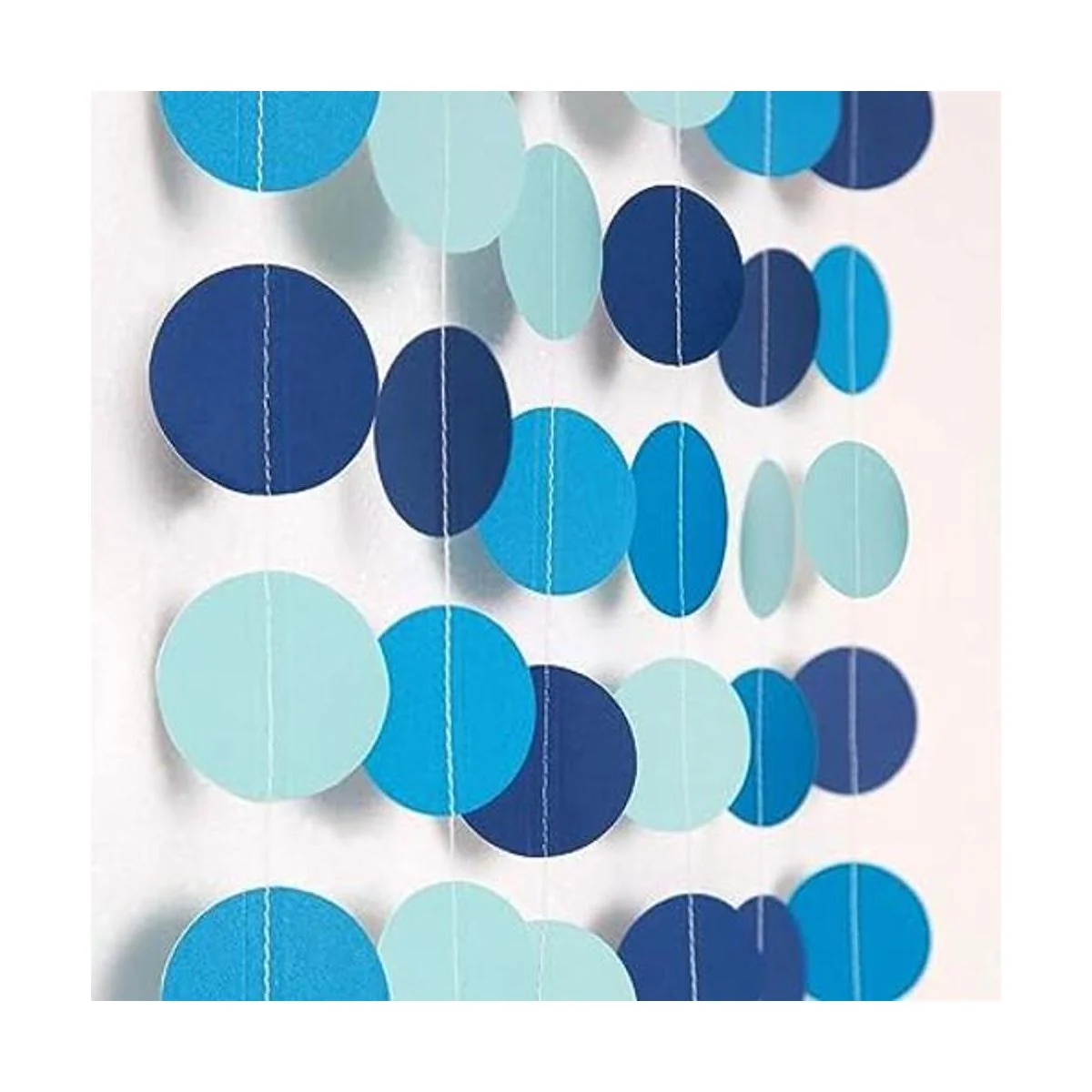 Decor365 Guirnalda de lunares circulares azules para decoración de fiesta de verano bajo el mar, piscina, playa, océano, burbuja colgante, banderines, telón de fondo, sirena, cumpleaños, boda, baby shower, habitación de niños, decoración de fiesta