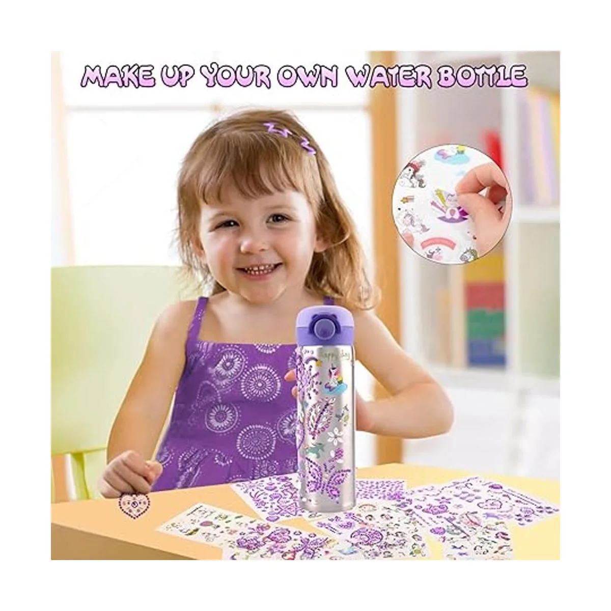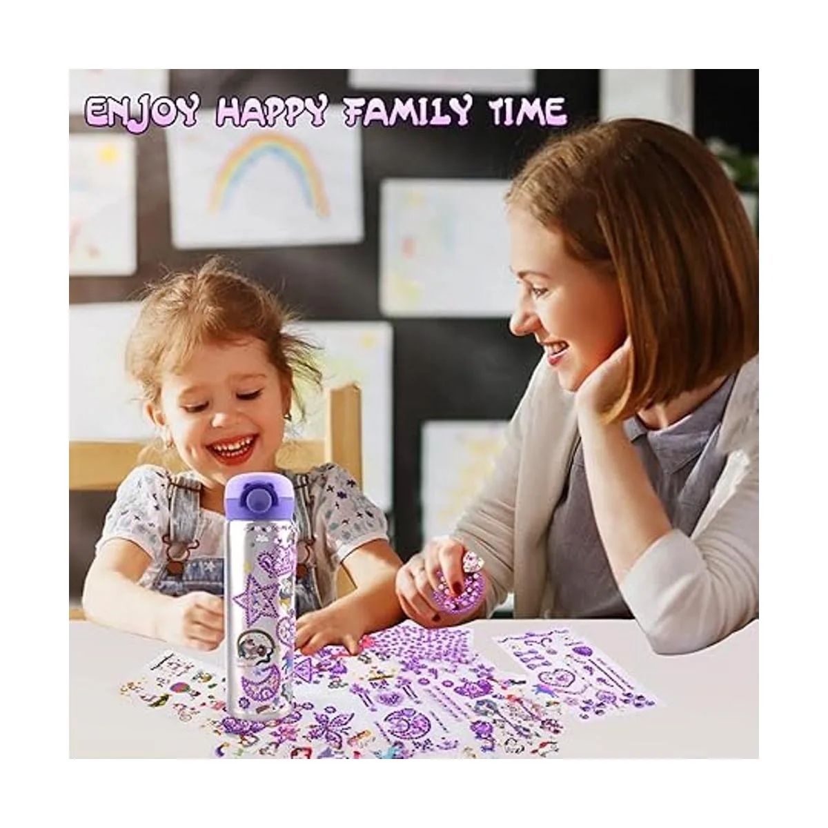 Increíble valor del paquete Decora tu propia botella de agua para niñas. El paquete viene con una botella de agua púrpura y 6 hojas de gemas de purpurina y 6 hojas de calcomanías de unicornio, más que suficiente para que los niños decoren su botella de agua. Tus niñas pueden utilizar la piedra preciosa y las calcomanías para decorar diarios, portátiles o cualquier superficie lisa Ven a dejar que los niños usen su imaginación única