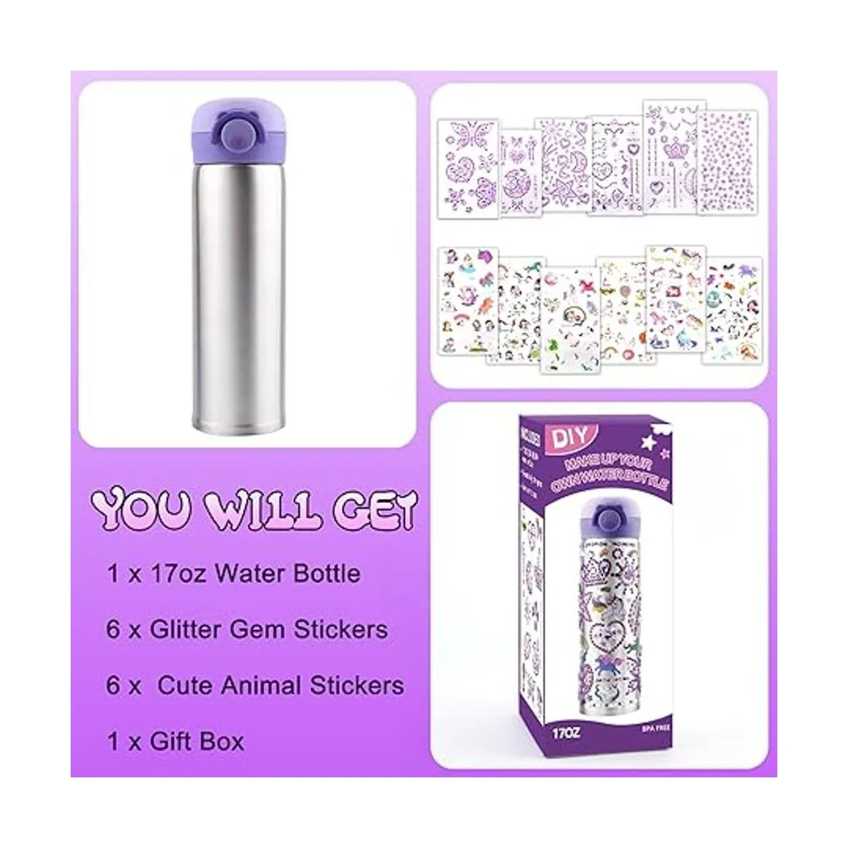 Regalos personalizados para niñas Esta botella de agua decorará tu propia botella de agua ayudará a tus hijos a expresar su talento artístico y desarrollar su imaginación decorando su propia botella de agua. Y un embalaje atractivo y una combinación romántica de colores. Esta botella de agua única se puede utilizar como un regalo para niñas de 6 a 12 años, cumpleaños, Navidad, Día de San Valentín, Día de la Madre, fiestas, Día del Niño y graduación. Creo que las niñas lindas se sorprenderán por este regalo creativo y personalizado.