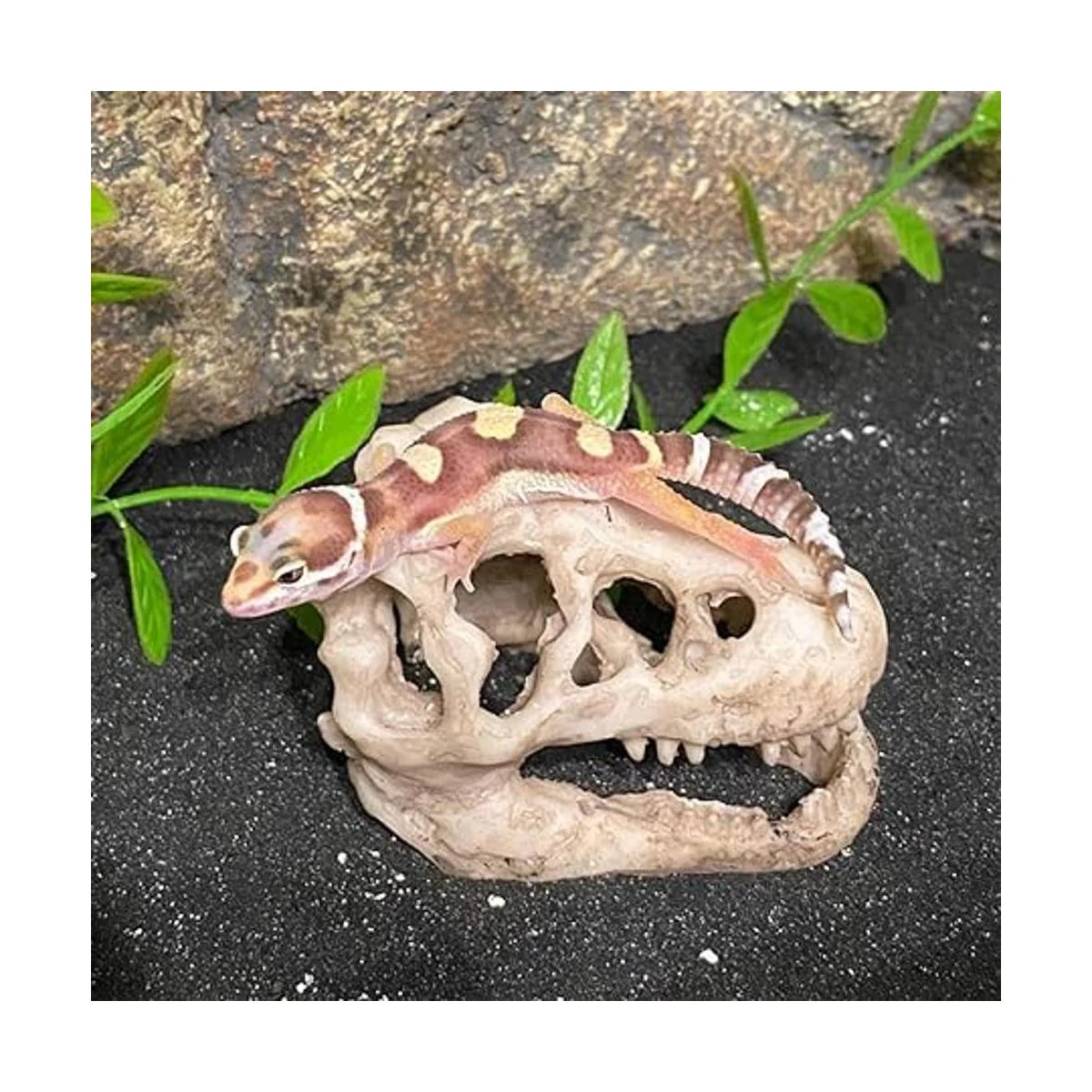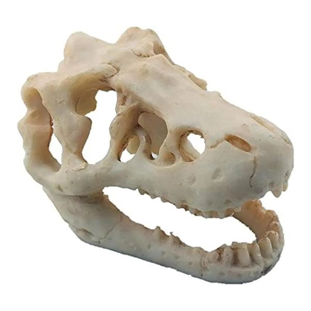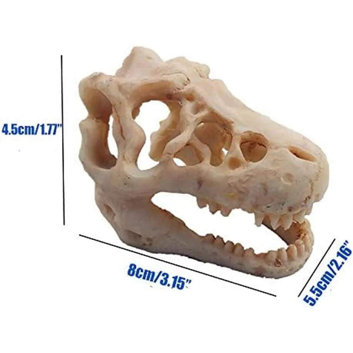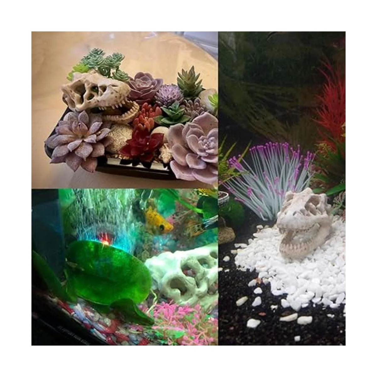 Material 100 natural: mini calavera de dinosaurio de acuario hecha de resina natural y libre de productos químicos. Es seguro para los peces. Camarones, cangrejos ermitaños, pescado, freír e incluso reptiles y pájaros aman las decoraciones. Antes de poner el producto en el acuario, enjuaga con agua primero.