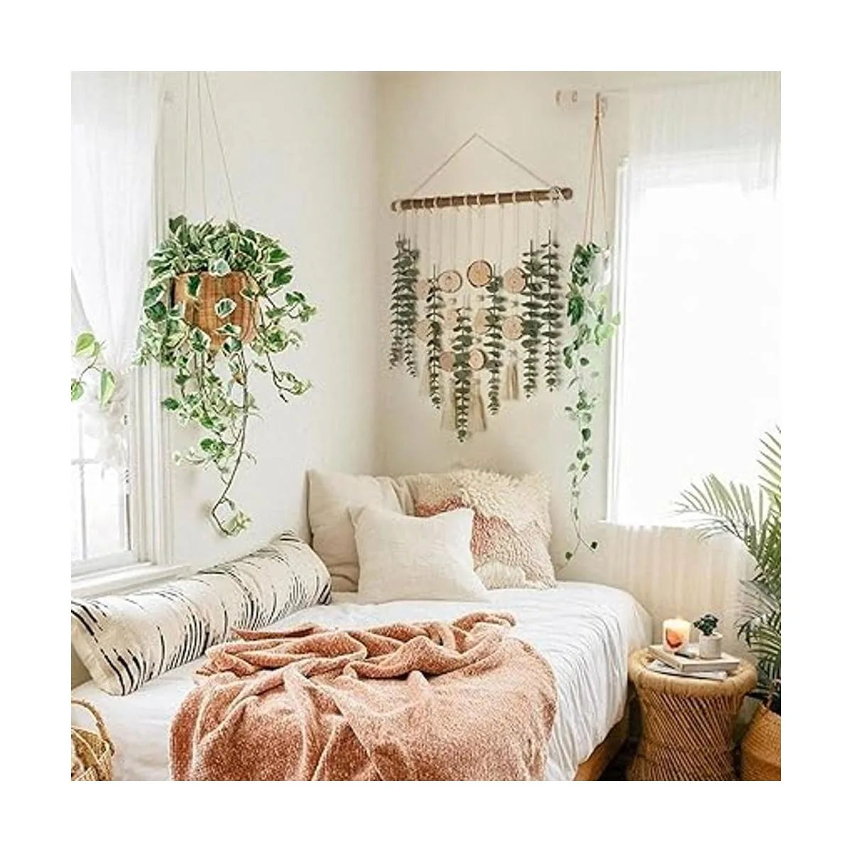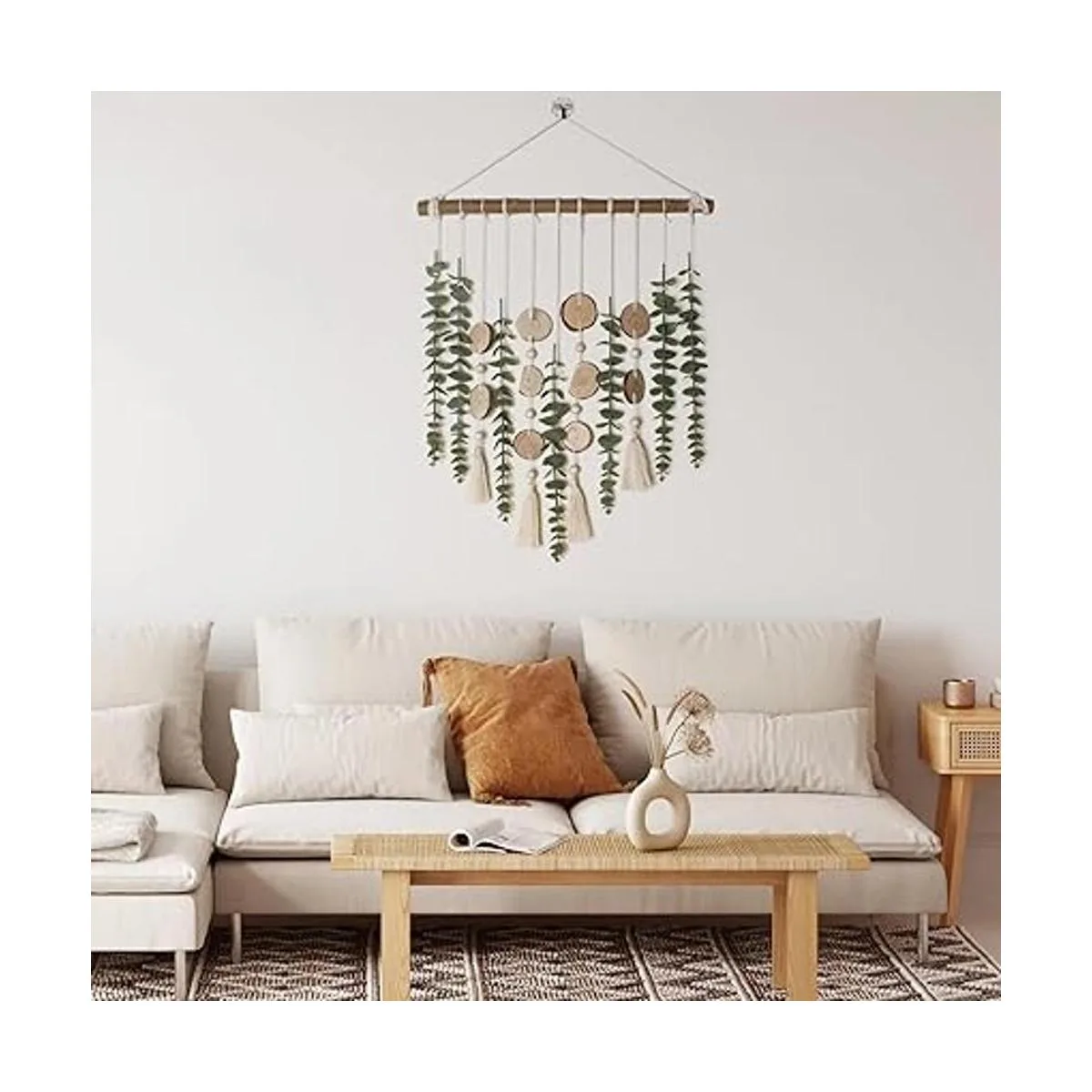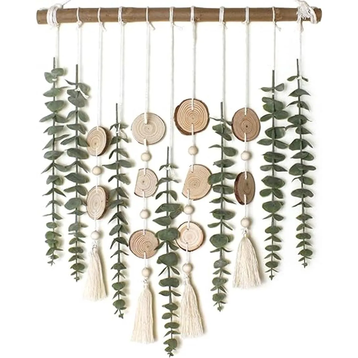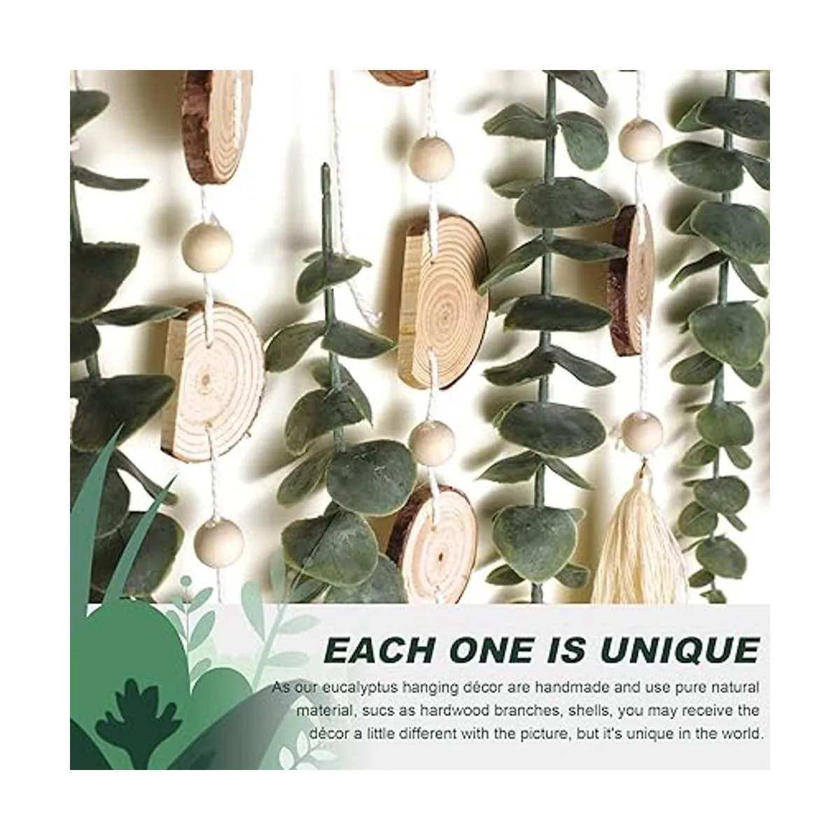 Hecho a mano, buena relación calidadprecio: este colgante de pared de eucalipto está 100 hecho a mano. No hay dos artículos exactamente iguales, puede variar ligeramente en forma y tamaño debido a que cada detalle está cuidadosamente hecho a mano. Las vides de eucalipto, rodajas de madera, cuentas, borlas hechas a mano están puramente atadas a las ramas.