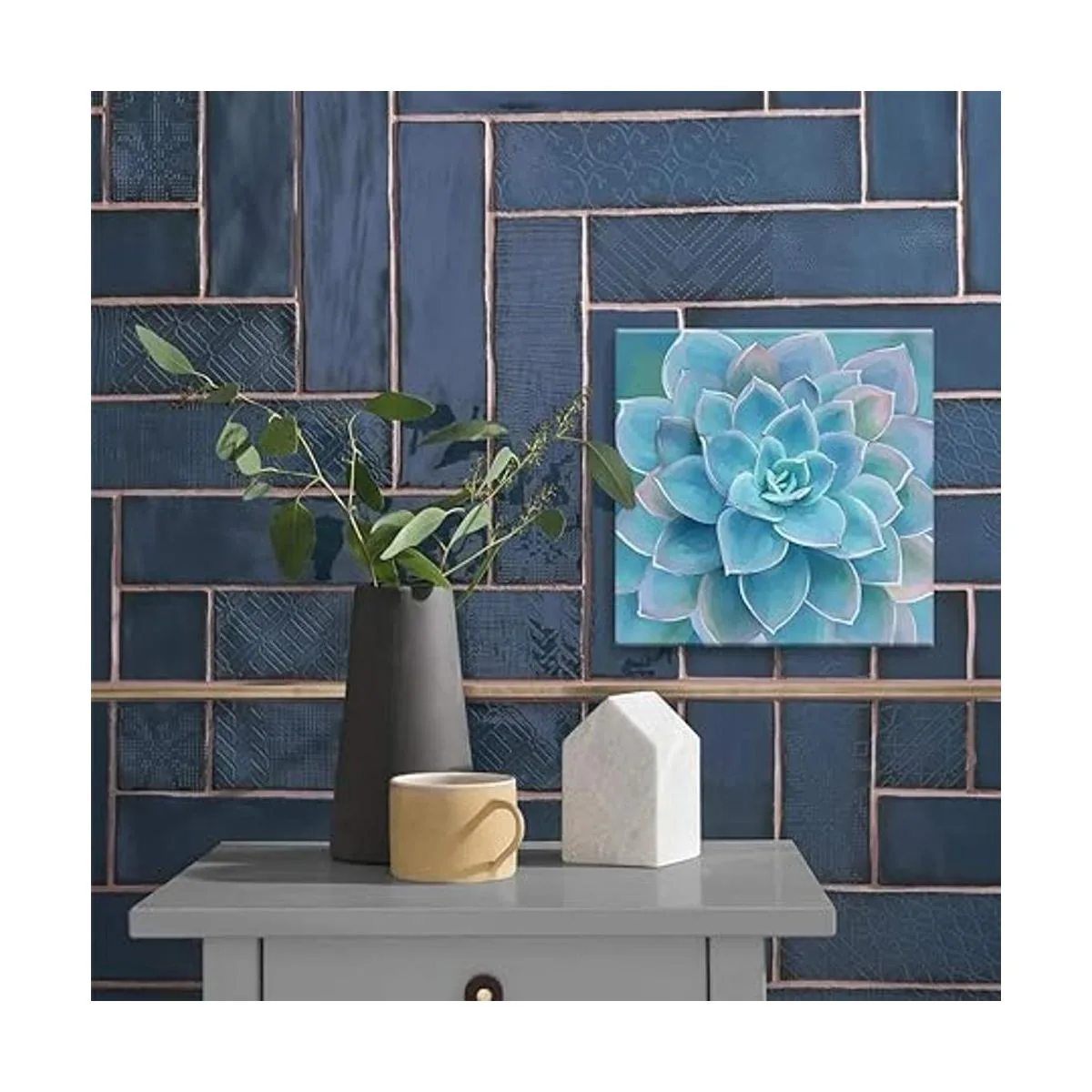 Decoración de baño de suculentas azules, arte de pared enmarcado, moderno y popular, decoraciones de plantas de pared, impresiones en lienzo, decoración de pared para dormitorio, flores azules, tamaño 14 x 14 pulgadas, fácil de colgar