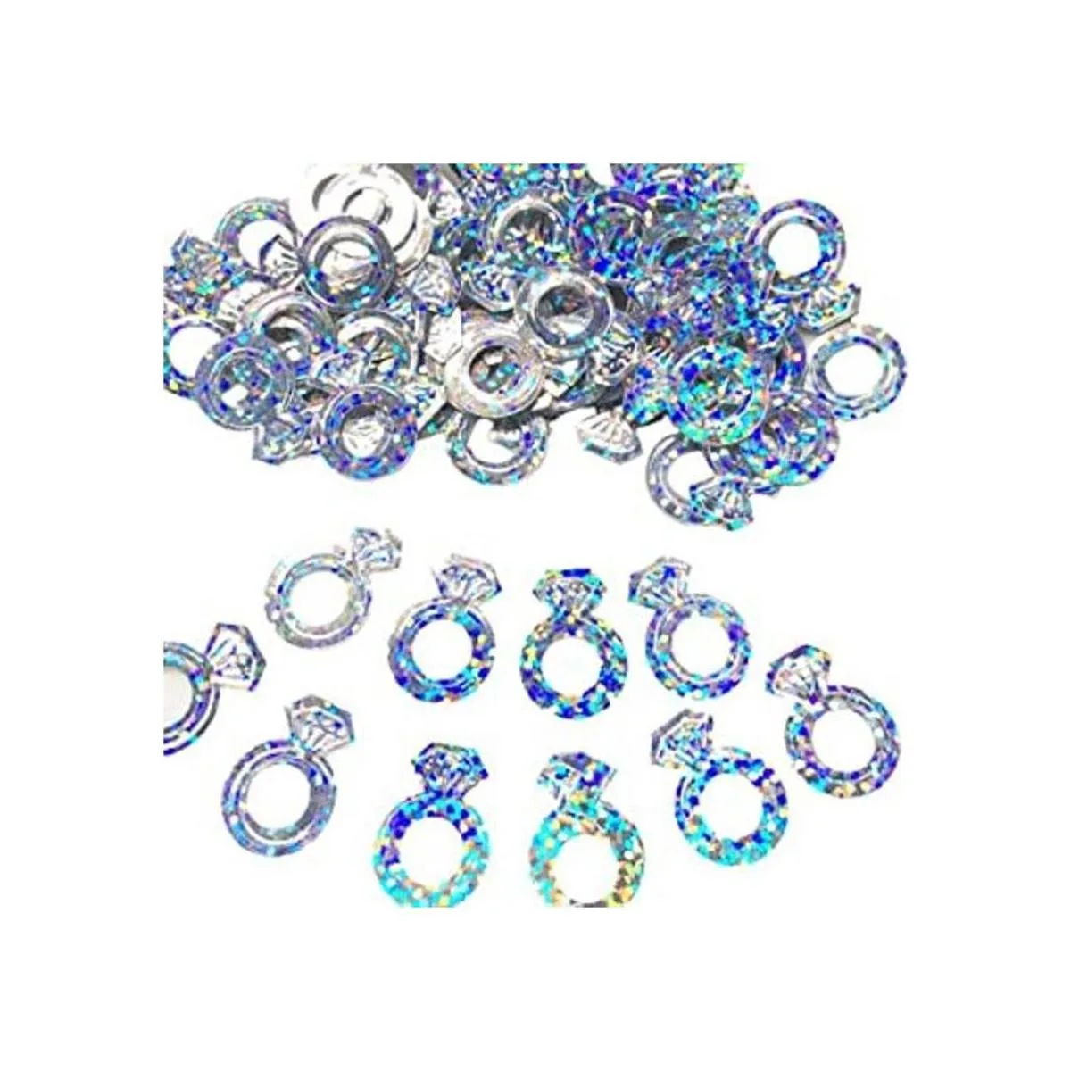 Decoración de boda con anillo de diamante de aluminio para compromiso, día de Vanlentines, despedida de soltera, despedida de soltera, fiesta de despedida de soltera plata iridiscente, bolsa de 1.5 onzas, 700800 piezasbolsa
