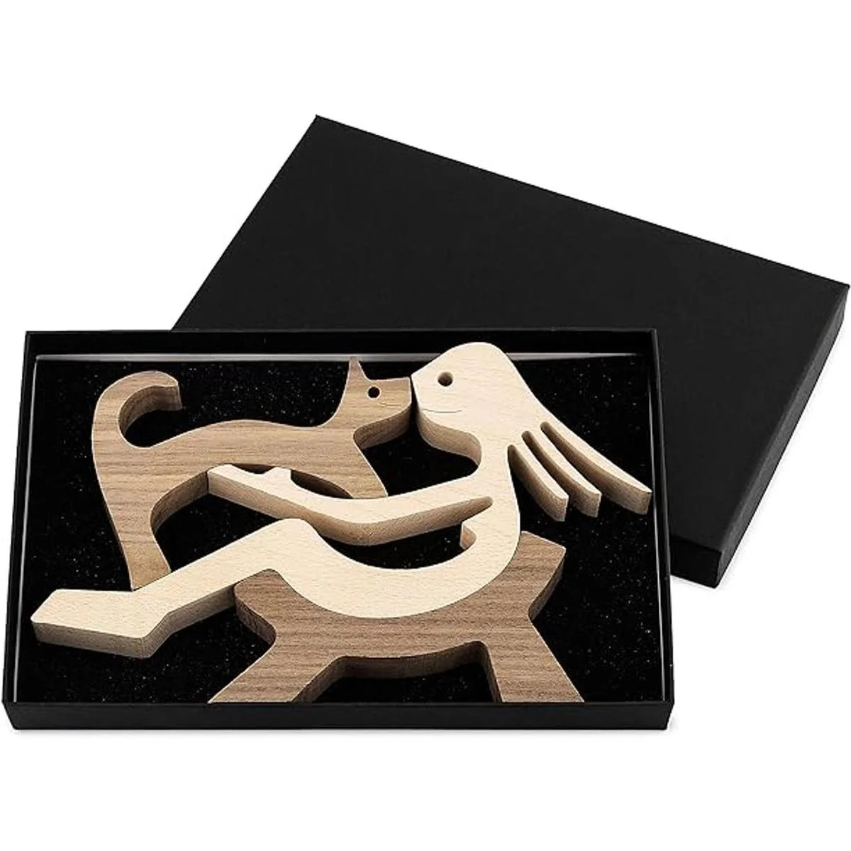 Diseño único: esta figura de mujer y gato está hecha en tres piezas que se unen de una manera muy ingeniosa.
