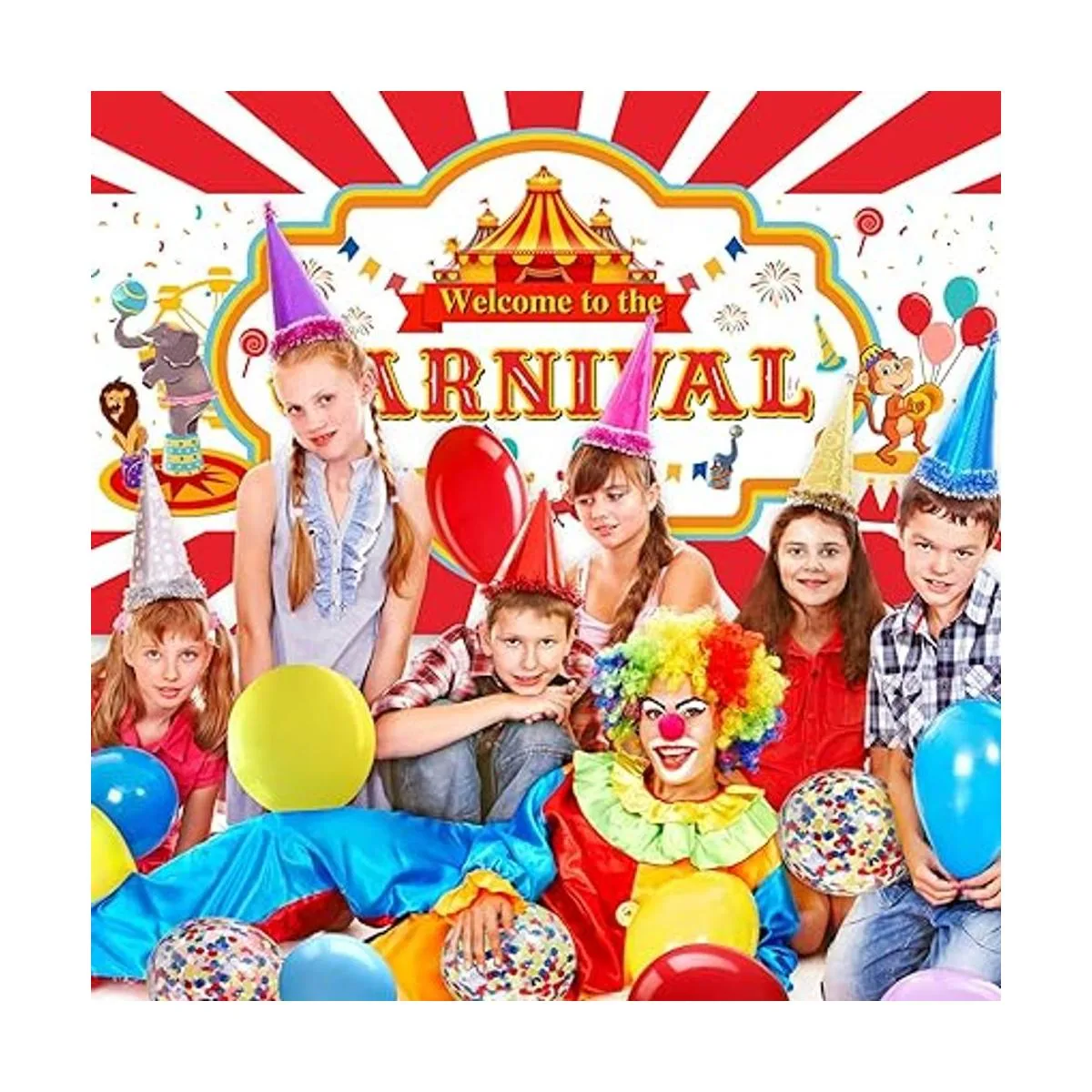 Amplia gama de aplicaciones: puedes utilizar estos manteles de fiesta de carnaval, telón de fondo y globos para crear un ambiente feliz para cualquier fiesta temática como fiestas de circo, fiestas infantiles, fiestas de cumpleaños, fiestas de Navidad y carnavales, haciendo que tu fiesta esté llena de alegría