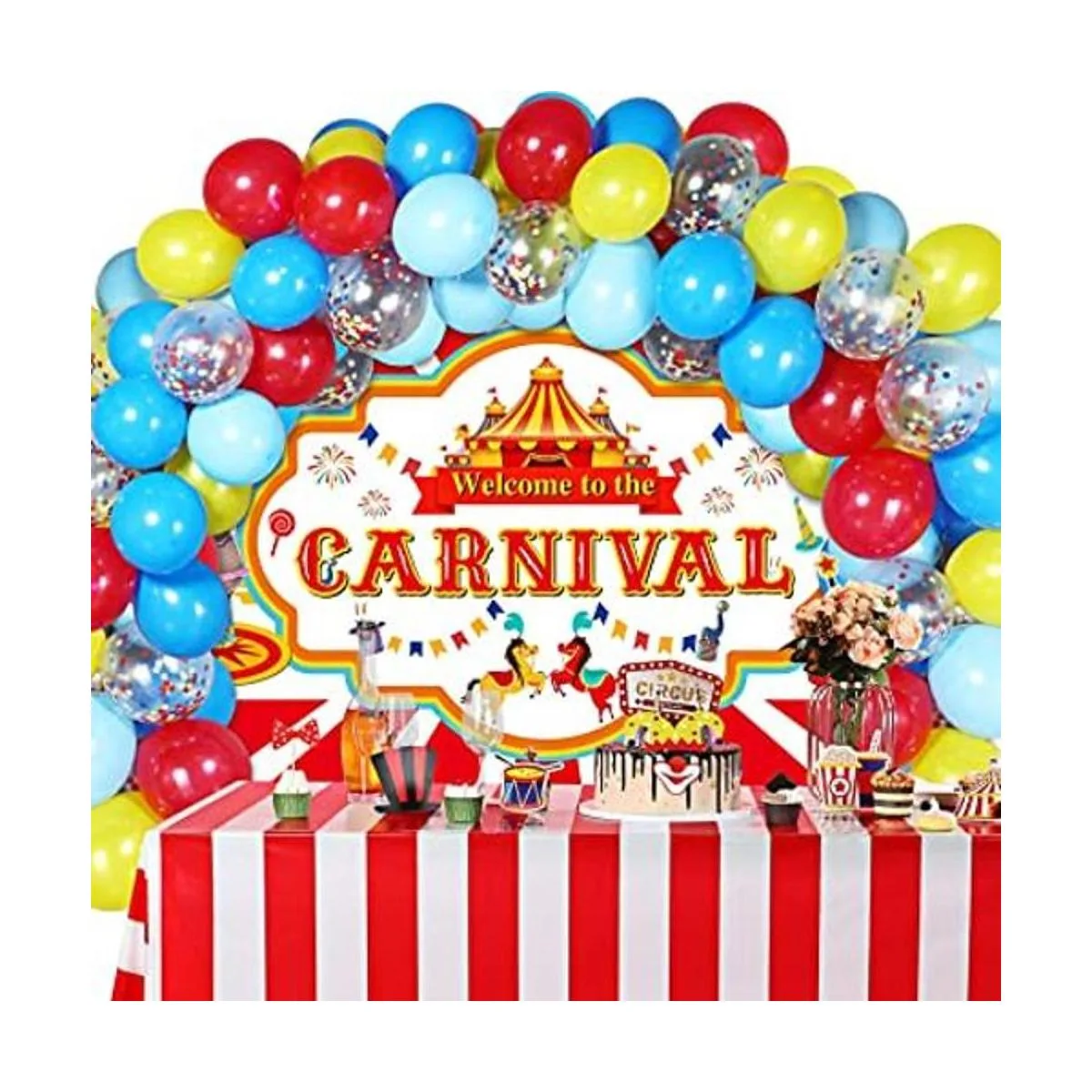 Decoración de fiesta de carnaval de circo, incluye kit de globos de confeti de circo, fotografía, telón de fondo, pancarta, manteles de fiesta de carnaval para niños y niñas, suministros de decoración de fiesta de cumpleaños