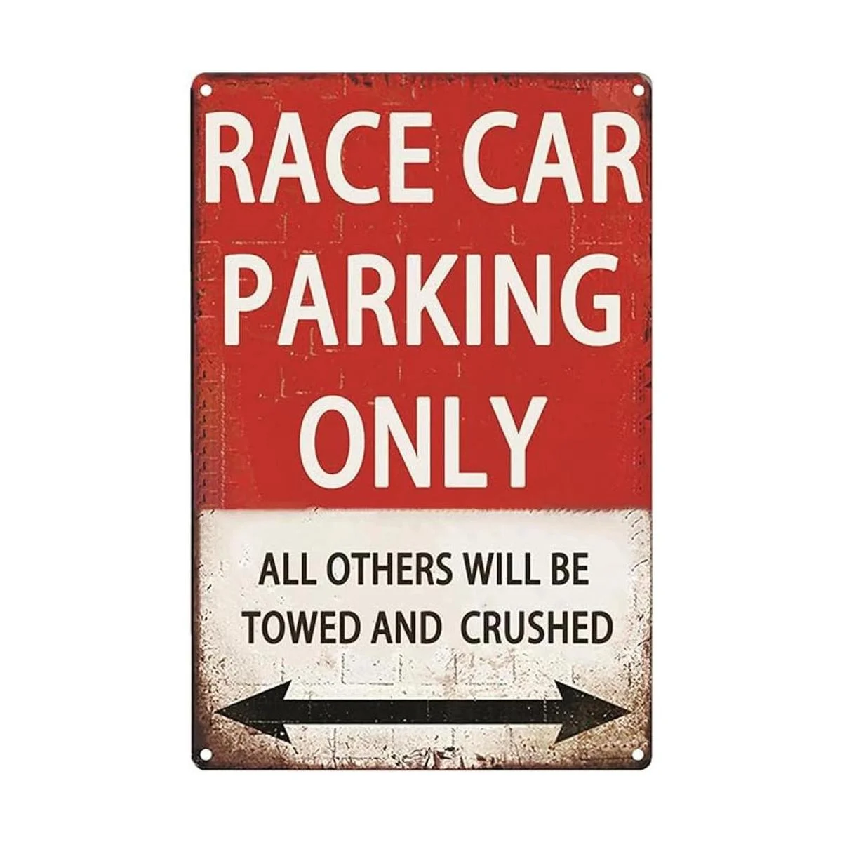 Decoración de habitación de autos de carreras para niños, letreros de metal vintage para dormitorio y garaje, decoración de pared, estacionamiento de autos de carreras, solo 8 x 12 pulgadas