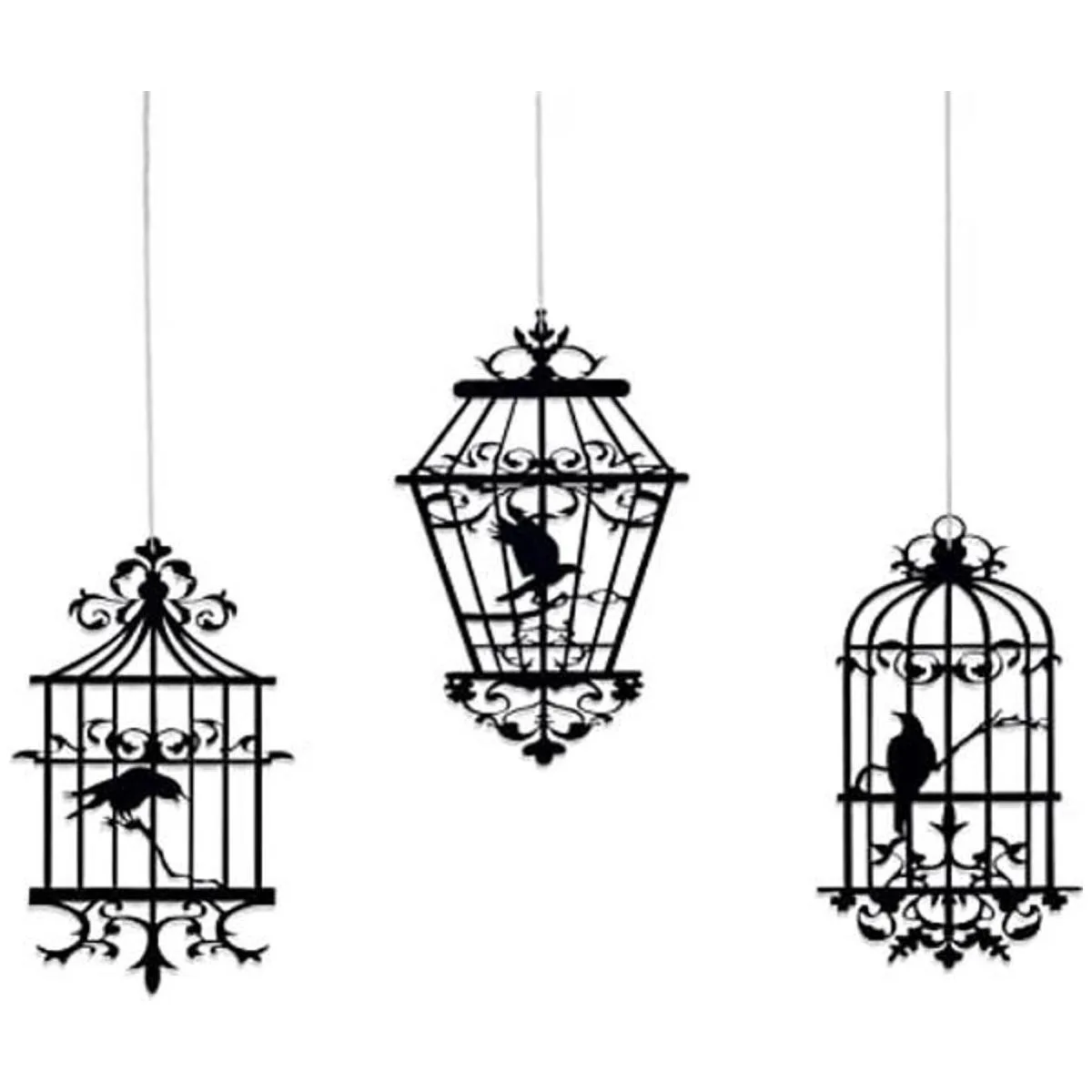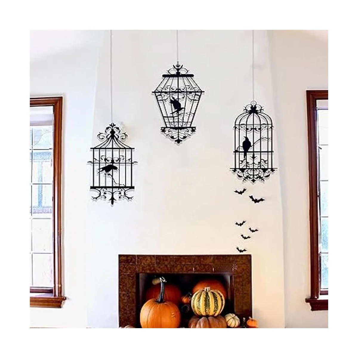Decoración de jaula de pájaros, decoración de jaula de pájaros, calcomanía de pared de casa de pájaros, regalos para amantes de los pájaros, decoración de casa de pájaros, juego de 3, arte de pared del hogar, decoración de mantel de Halloween decoración de jaula de pájaro