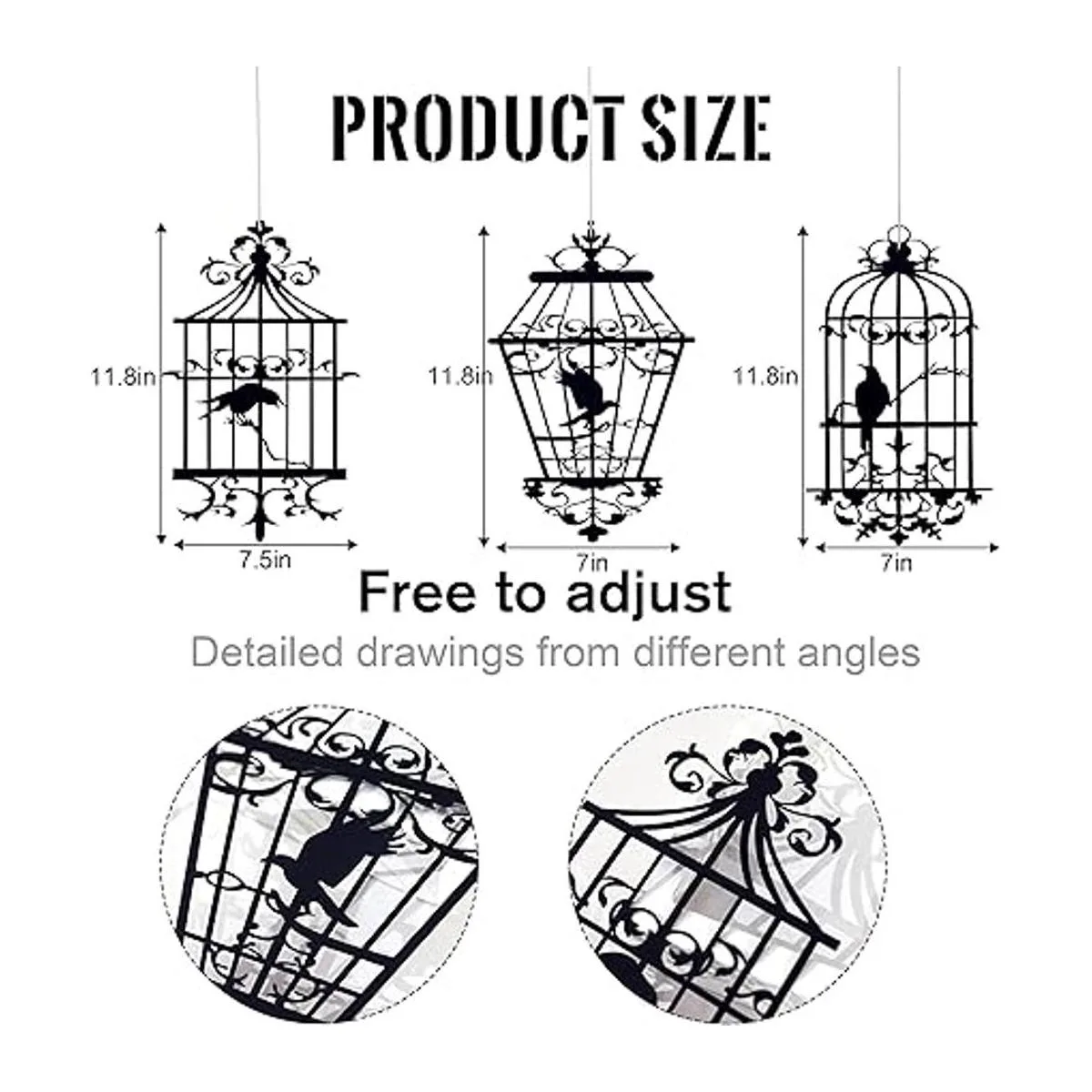 Decoración negra de Halloween: esta decoración de jaula de pájaros negros decorará la fiesta más brillante y hará que la ocasión de fiesta sea más hermosa. Puedes colgarlo en cualquier lugar que desees En o encima de tu mesa de pastel o regalo o úsalo como un telón de fondo para tus fotos de grupo