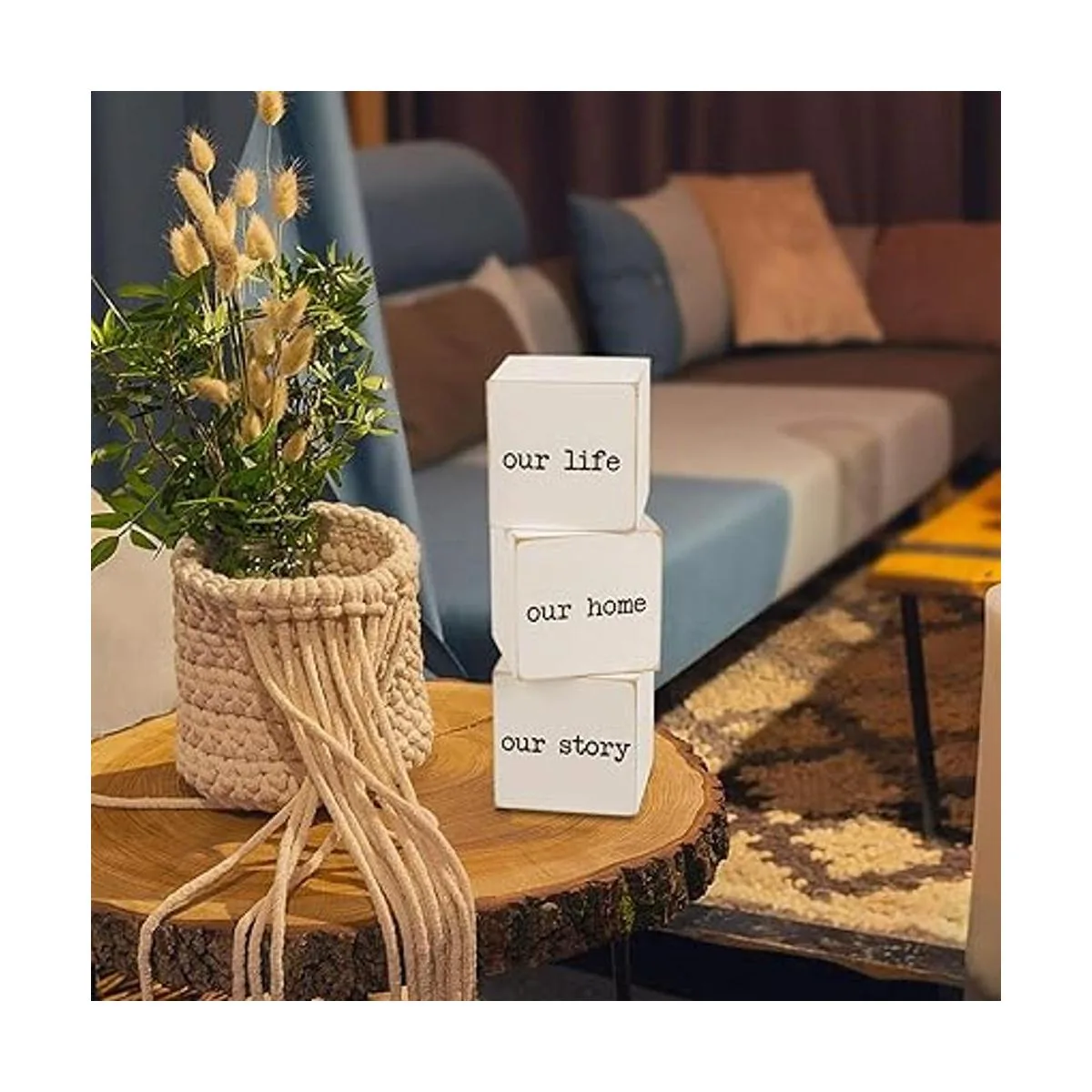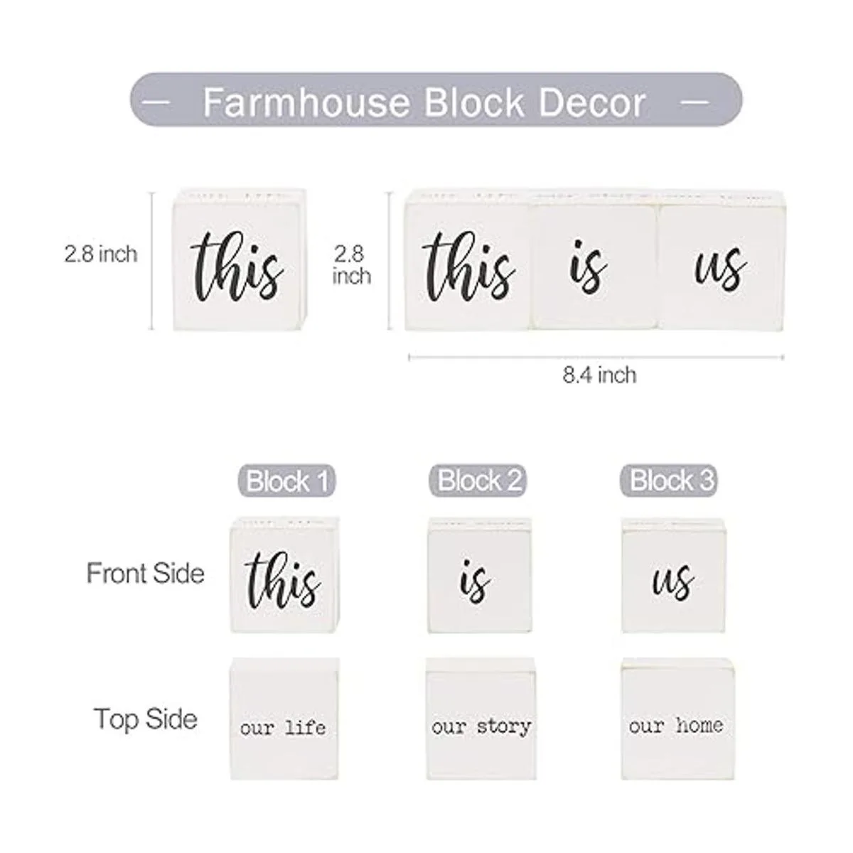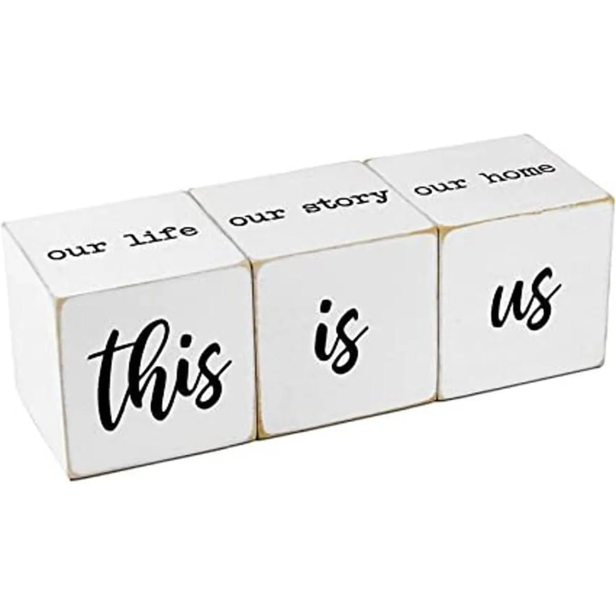 Decoración de madera de granja This is us Our Life Our Story Our Home Bloques de letras de 2 lados, decoración rústica vintage escalonada, letreros modernos de decoración de granja para sala de estar, estantes del hogar