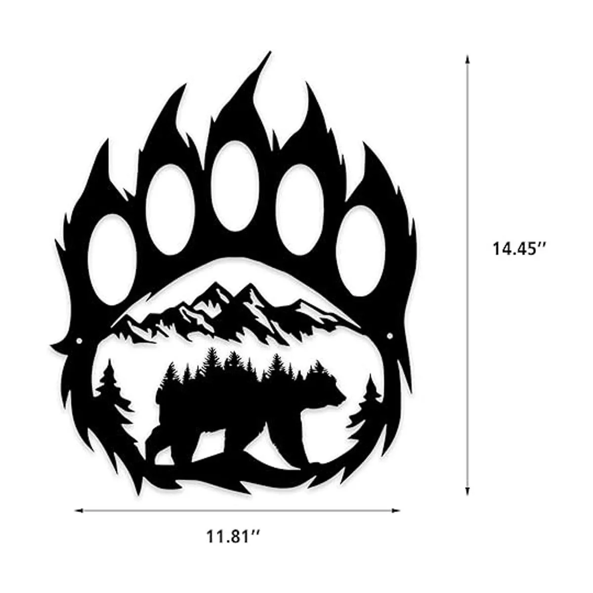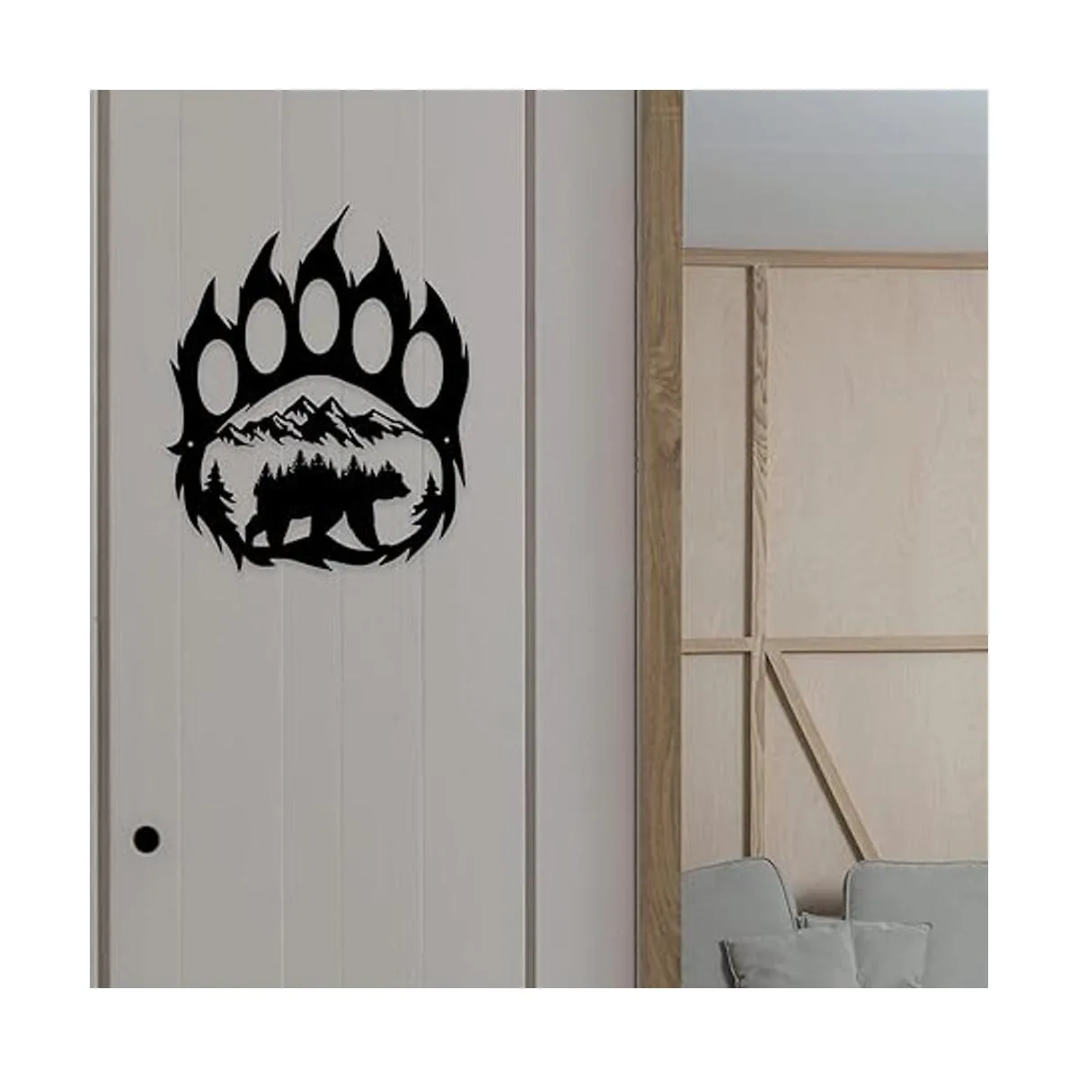 Decoración de oso de metal, decoración de pared de oso, decoración rústica de patas de oso de caza, decoración de pared de oso de bosque para baño, sala de estar, dormitorio, 14.5 x 11.8 pulgadas, negro