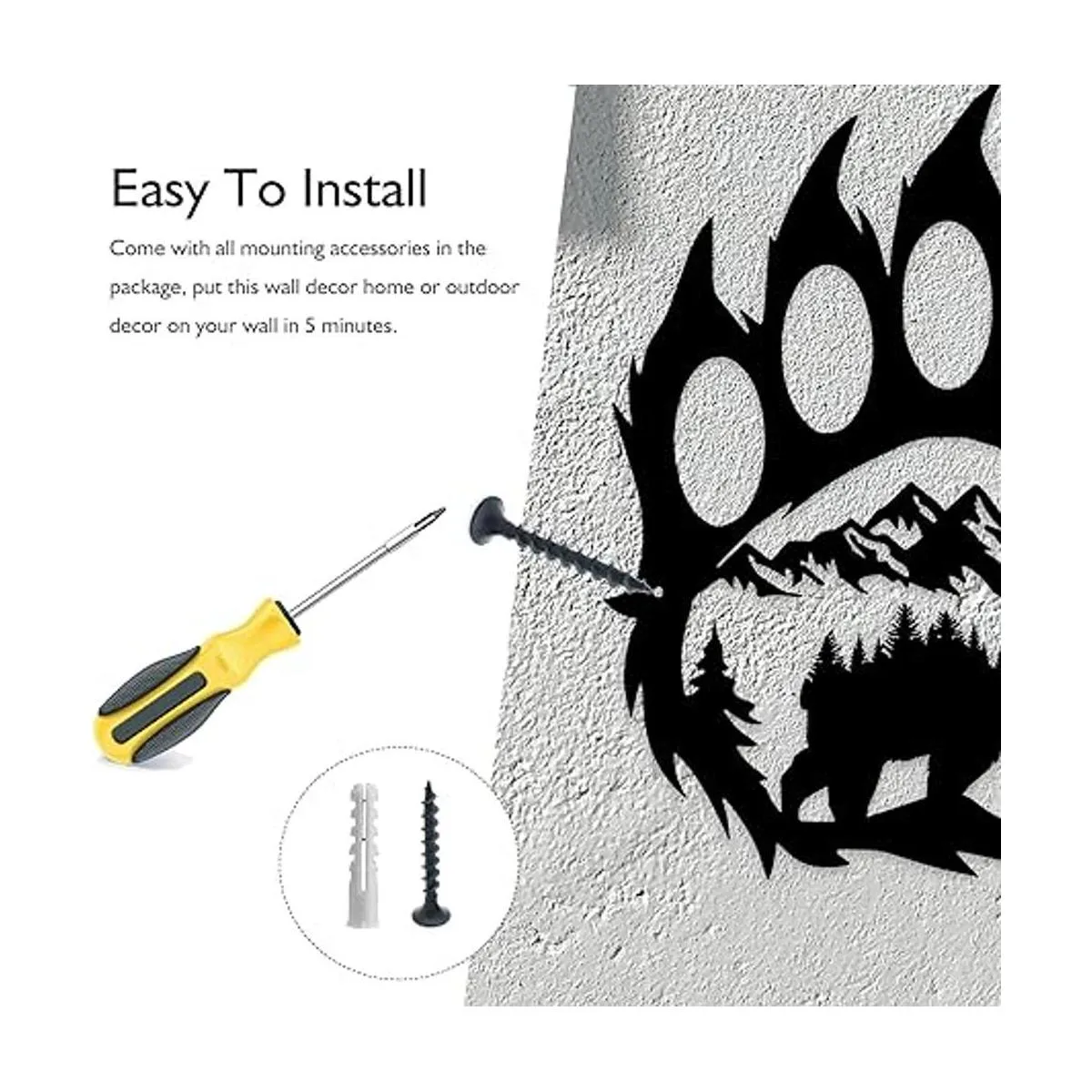 Diseño de tamaño: nuestra decoración de pared de oso de bosque rústico de metal mide aproximadamente 14.4 x 11.8 pulgadas, el tamaño grande es suficiente para decorar tu sala de estar, dormitorio, baño, cocina, etc., puedes colgarlo en la pared para crear un ambiente natural.