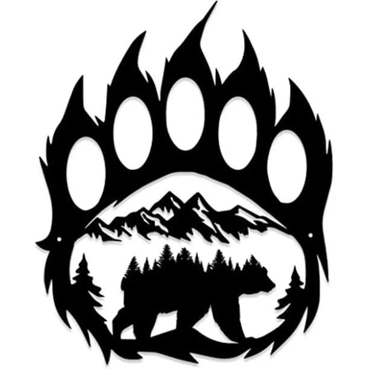 Decoración única de cabina: nuestra decoración artística de pared de oso contra el fondo de patas de oso y montañas y bosque, y un oso para caminar, puedes colgarlo en la pared para crear un ambiente natural.