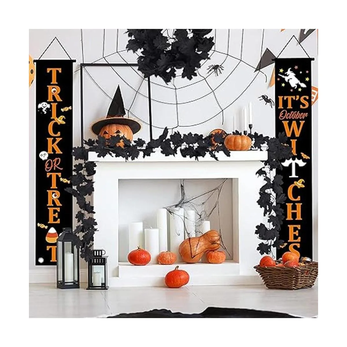 Decoraciones de fiesta de Halloween: las hojas de arce negro representan el misterio y crean un ambiente misterioso para tus fiestas temáticas de otoño, decoración de festival de cosecha, fiestas de Navidad. La guirnalda negra también puede decorar balcón, mesa, chimenea, marco de puerta, barandillas de escalera. Las vides de hoja de arce se pueden doblar. Puedes combinar 2 vides de arce para que sean más esponjosas y crear un hermoso efecto visual.