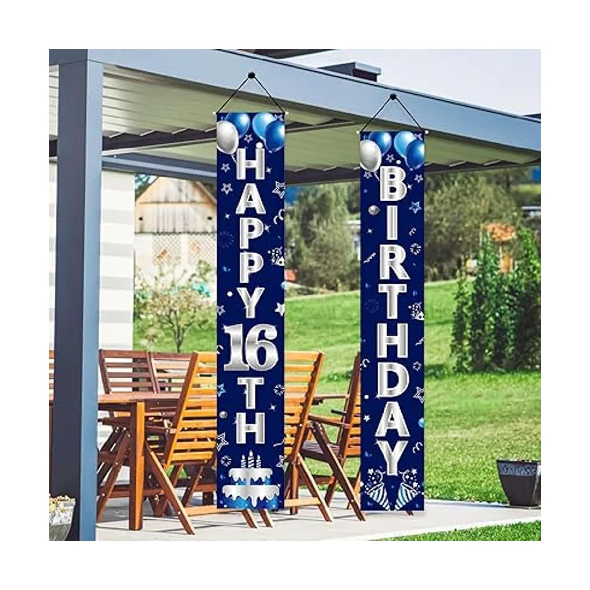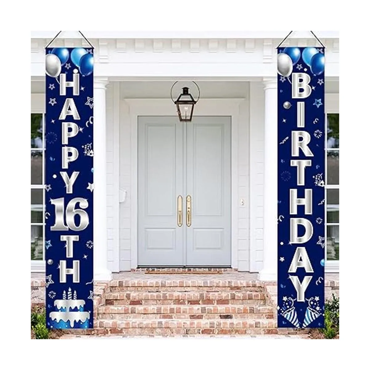 Decoración de pancarta para puerta de cumpleaños número 16, suministros de letrero de porche para fiesta de cumpleaños de 16 años, dulce decoración de fiesta de cumpleaños de 16 años