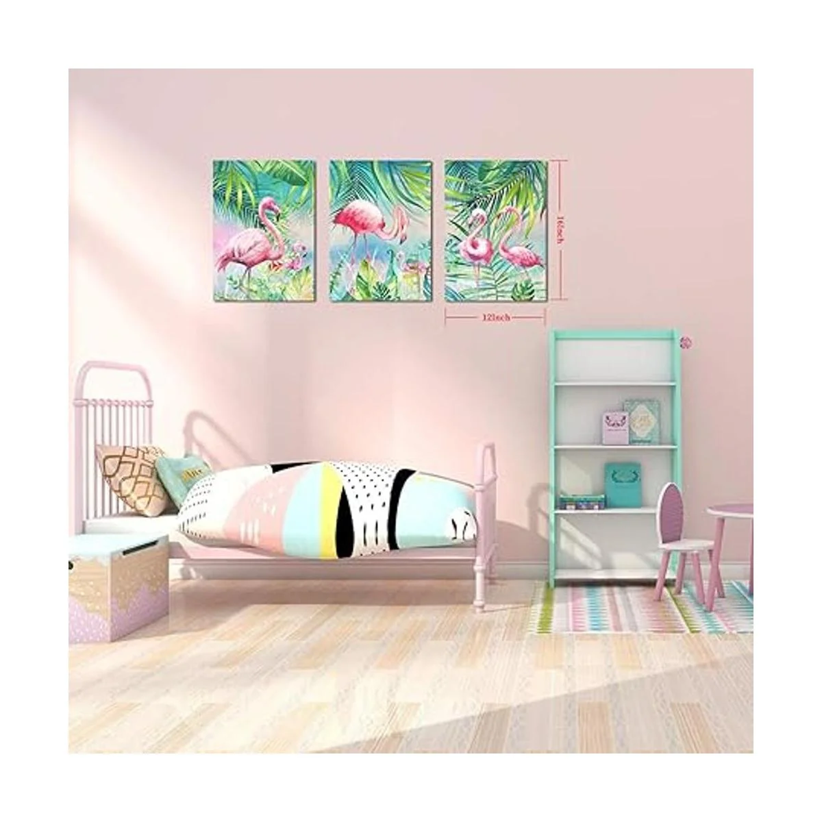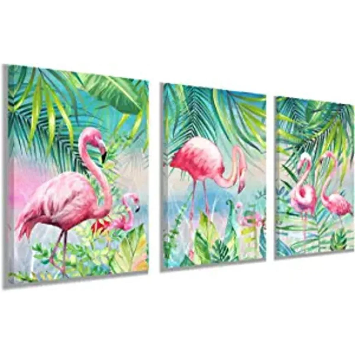 Decoración de pared de flamenco, diseño de animales, planta tropical verde palma, para decoración de habitación de niños y niñas, carteles enmarcados, pinturas para decoración de dormitorio