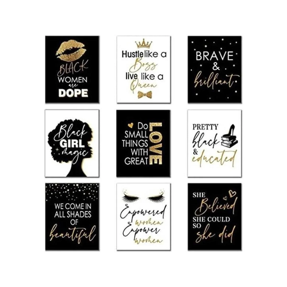Alta calidad: estos elegantes carteles de pared para mujer africana están hechos de cartulina dura, buen diseño de impresión hace que cada tarjeta se vea vibrante y no se decolora fácilmente, resistente y reutilizable, no tóxico y sin olor extraño
