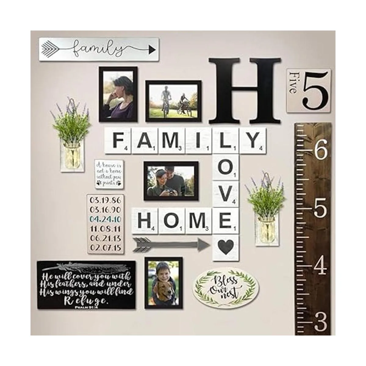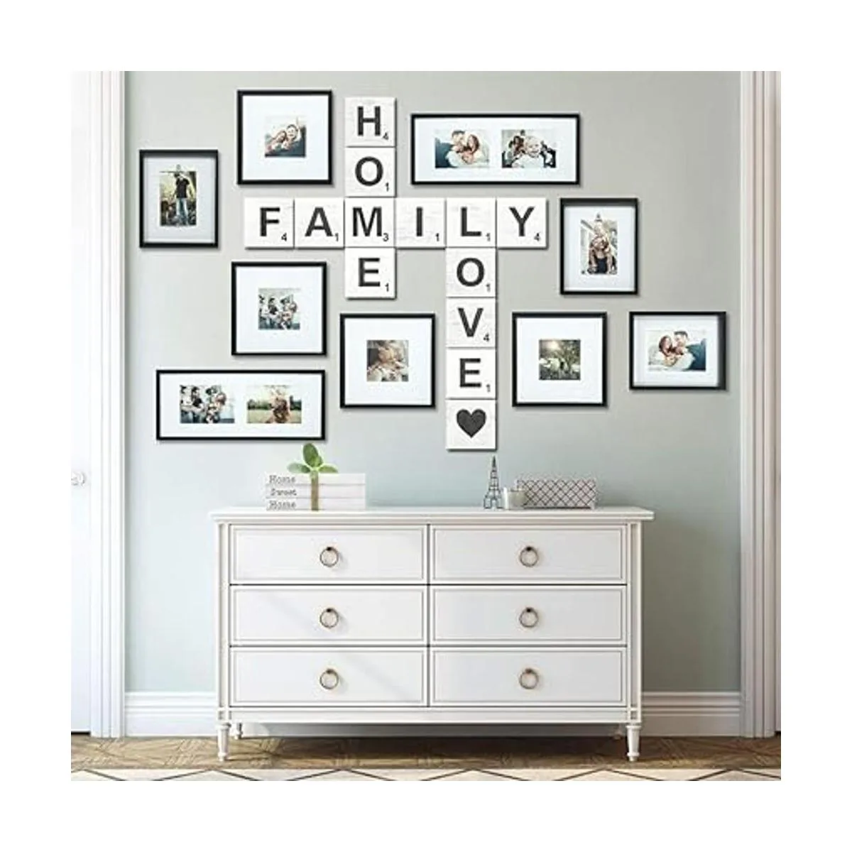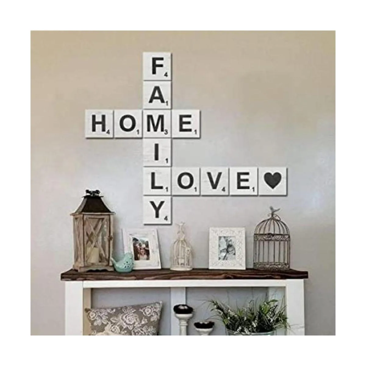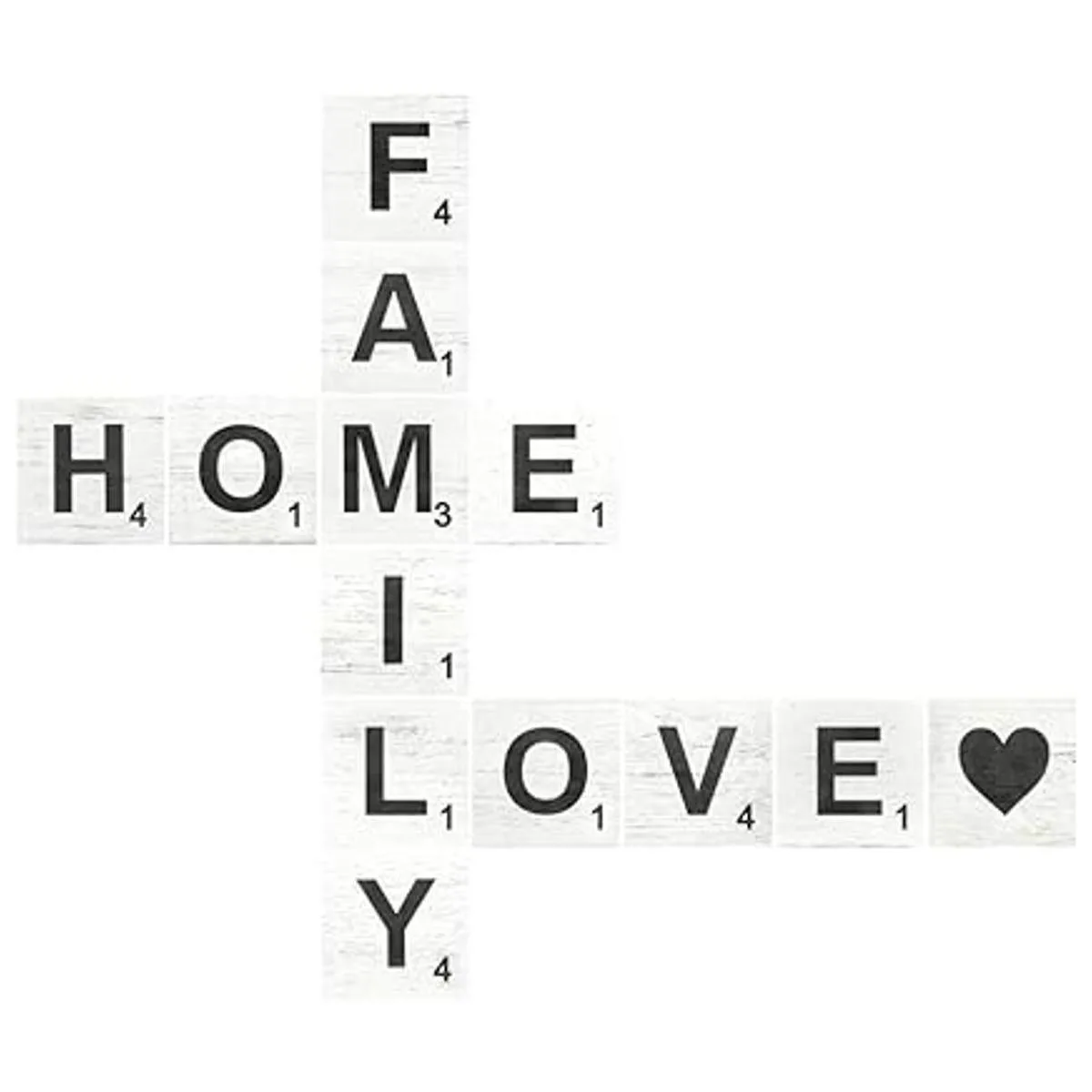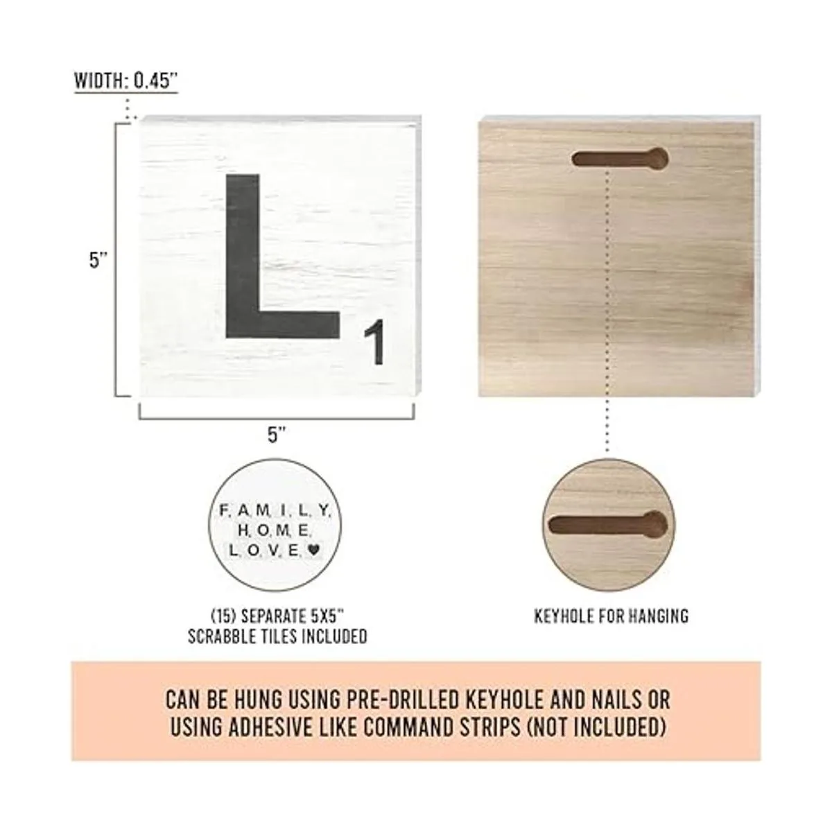 Decoración de pared rústica grande de Scrabble Farmhouse Familia, hogar, amor, decoración moderna de granja, decoración de pared grande para sala de estar, letreros familiares para decoración del hogar, decoración de pared colgante de pared, decoración de pared de madera, 5 x 5 pulgadas