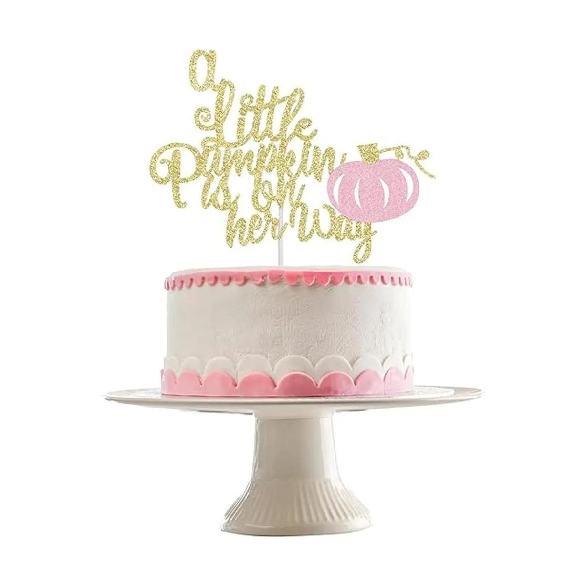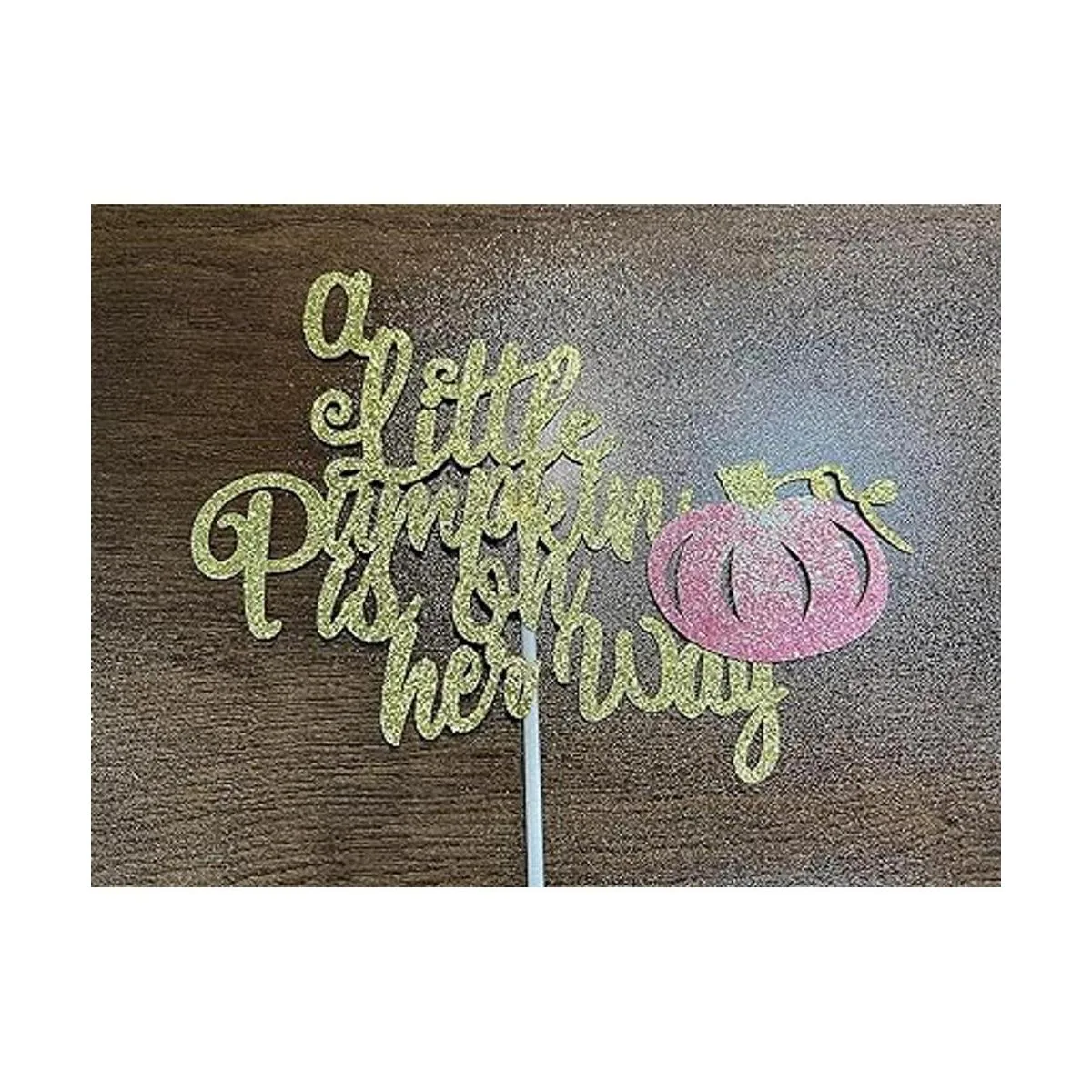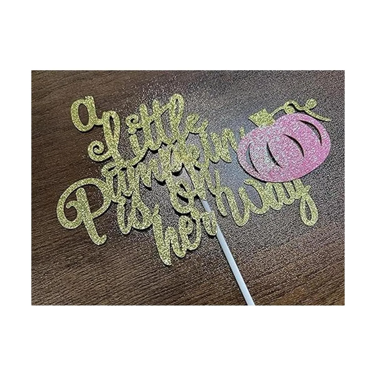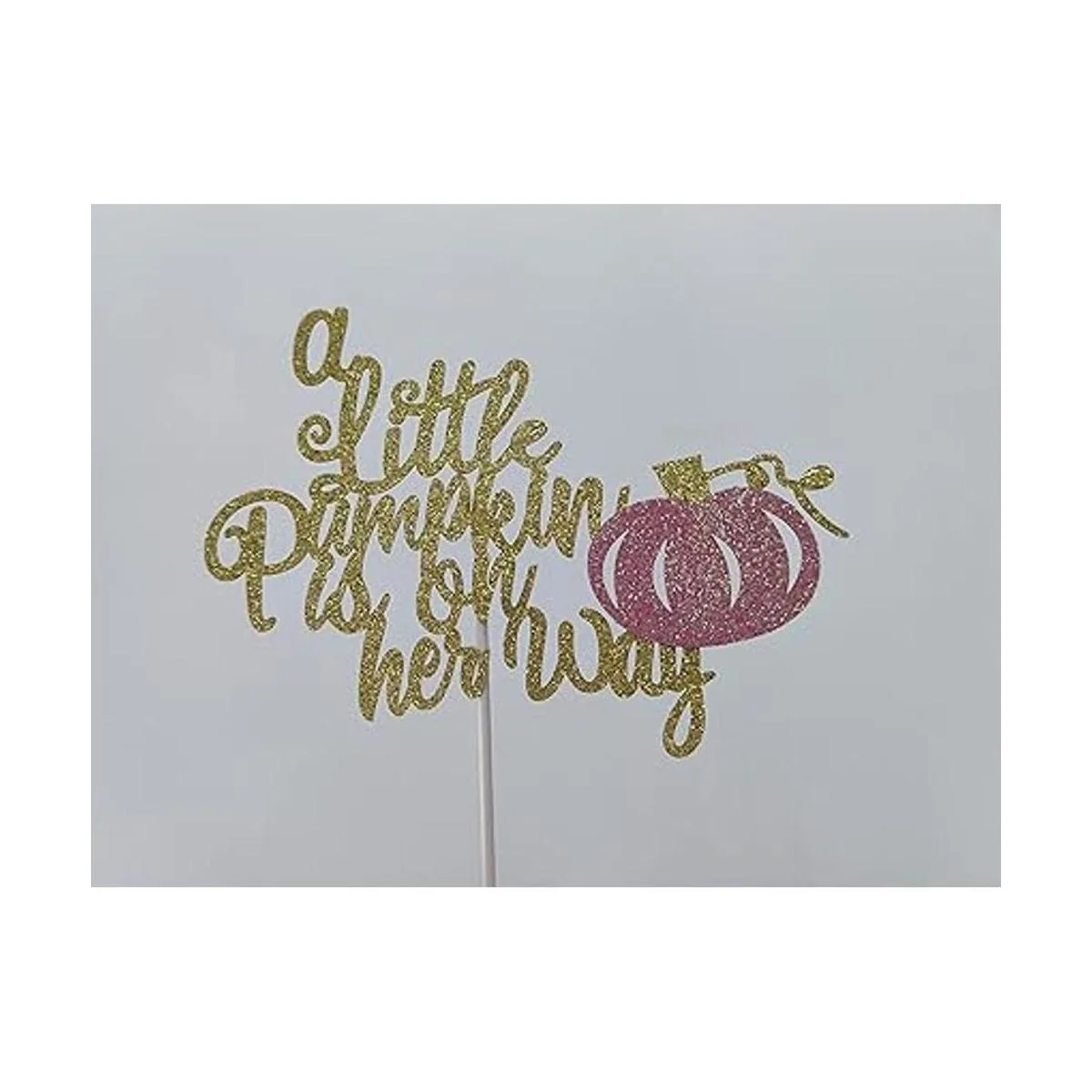 What You Will Get: 1Pcs gold glitter a little pumpkin is on her way cake topper, perfect for pink girl fall pumpkin baby shower cake decorations, suit for fall pumpkin theme party cake decor.