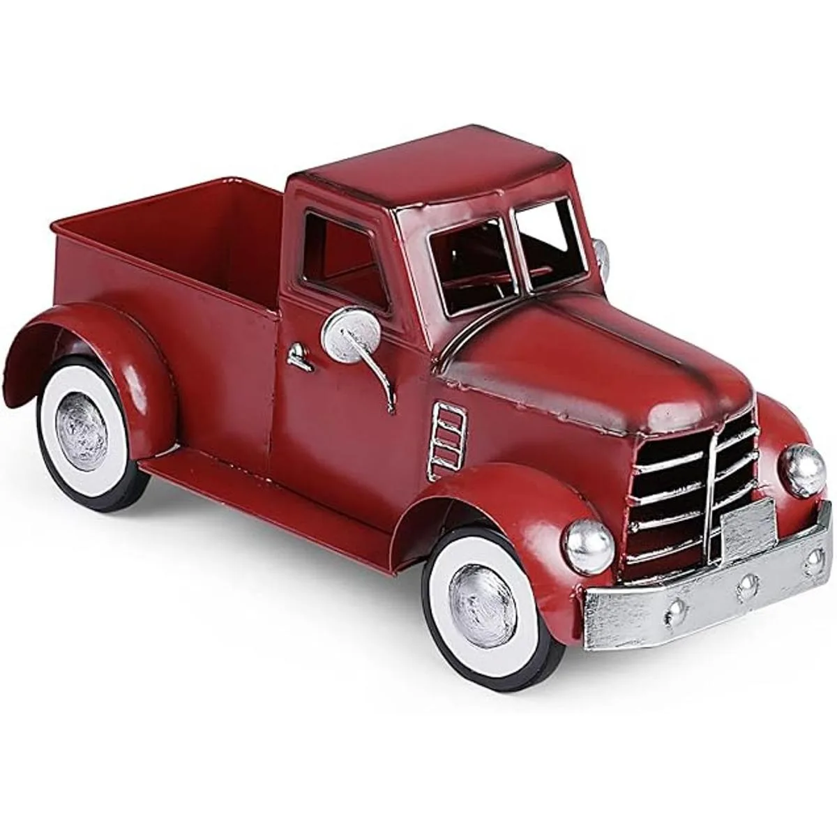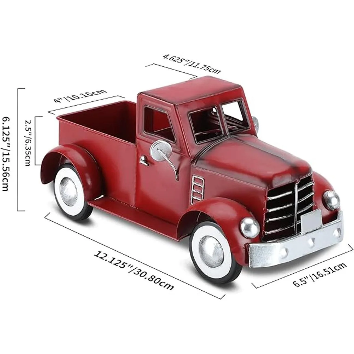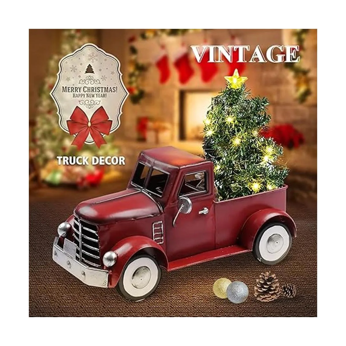 Decoración navideña de camión rojo, decoraciones de metal vintage para interiores y exteriores, almacenamiento decorativo de escritorio, maceta de recolección de granja