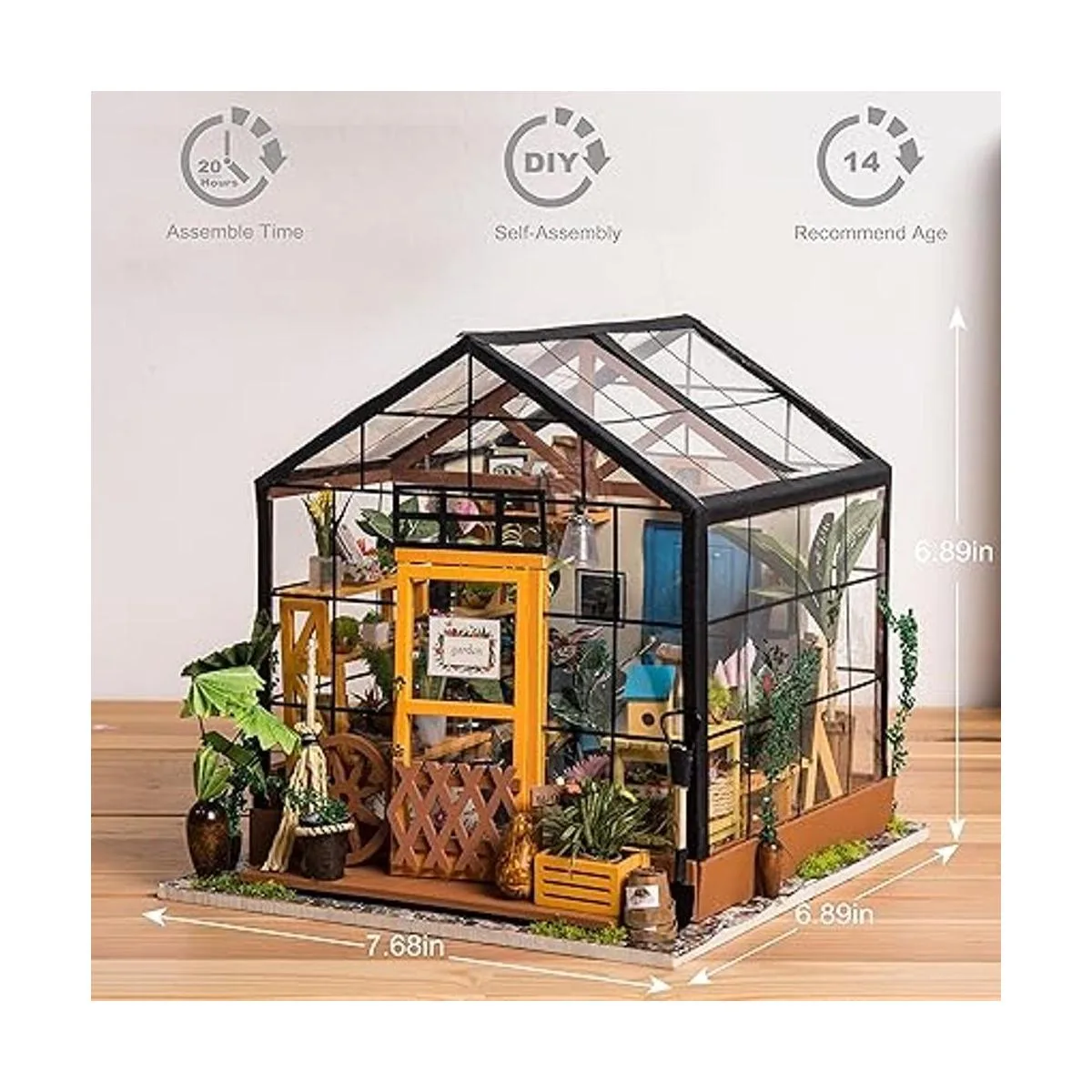 instrucciones en inglés con ilustración lindo y increíble Mini jardín casa, instrucciones de montaje en inglés con ilustración detallada y la imagen.