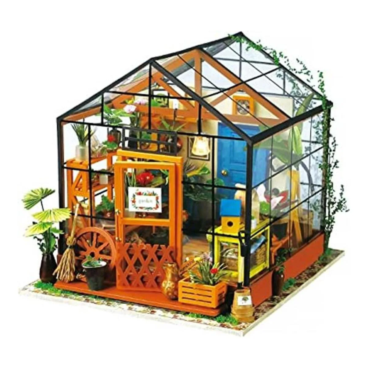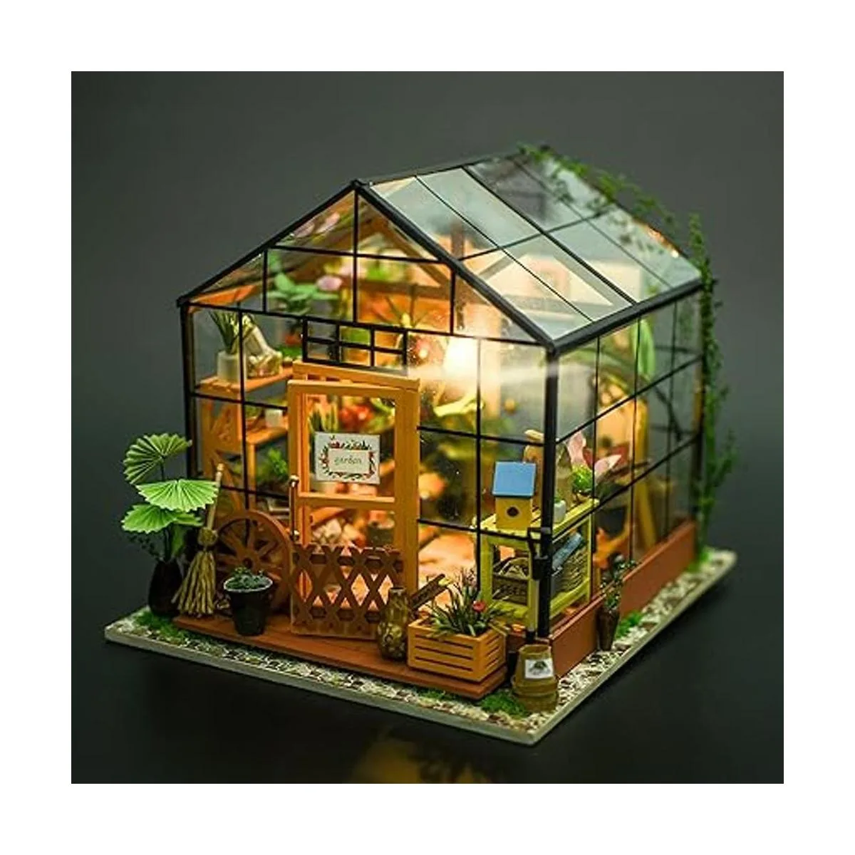 Decoración para casa de muñeca Robotime DIY casa de muñeca miniatura, muebles de madera con luz LED