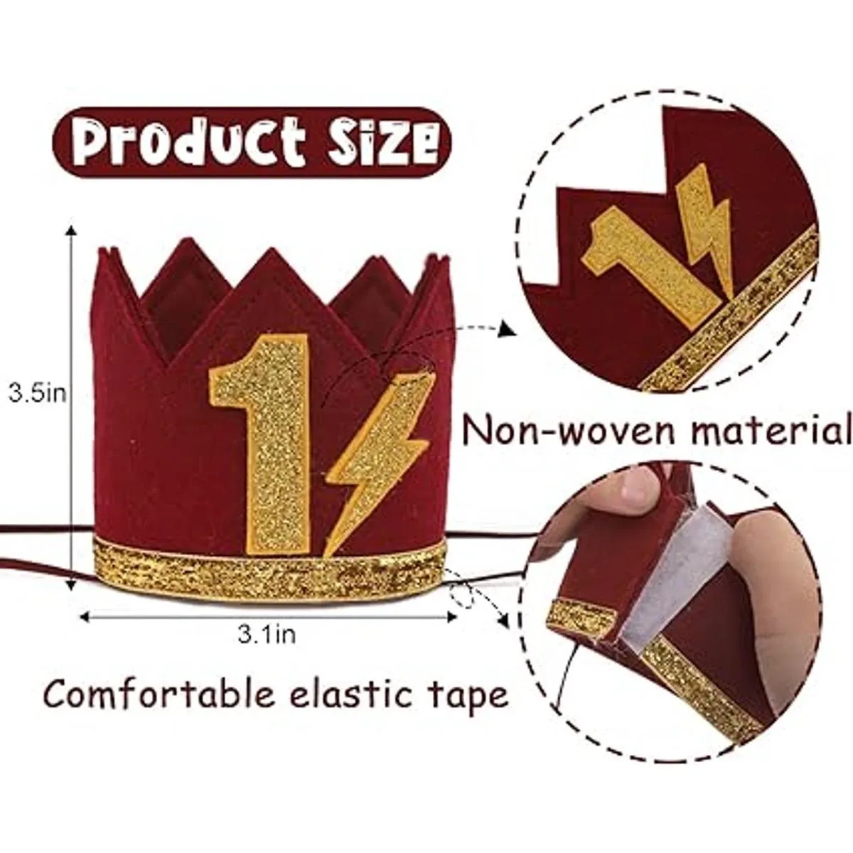 Quién es adecuado para usar el sombrero de cumpleaños de un rayo dorado Este sombrero de cumpleaños dorado y pajarita burdeos es adecuado para bebés que organizan fiestas de magos. También se puede utilizar como un accesorio de fondo de fotos para eventos que aman temas mágicos. También es una buena opción