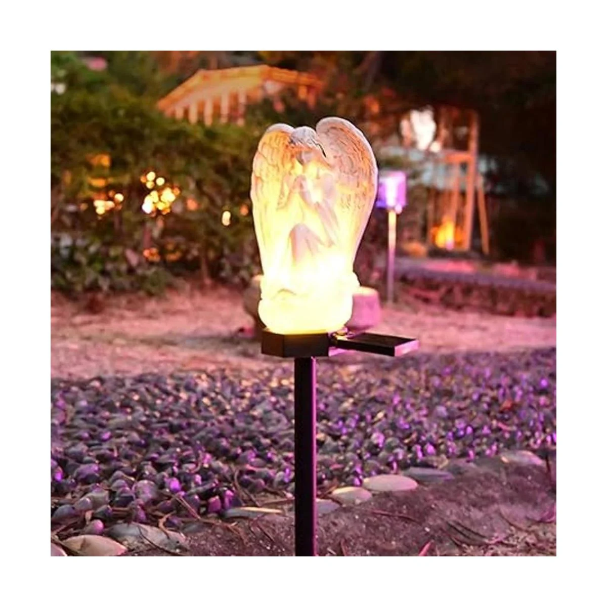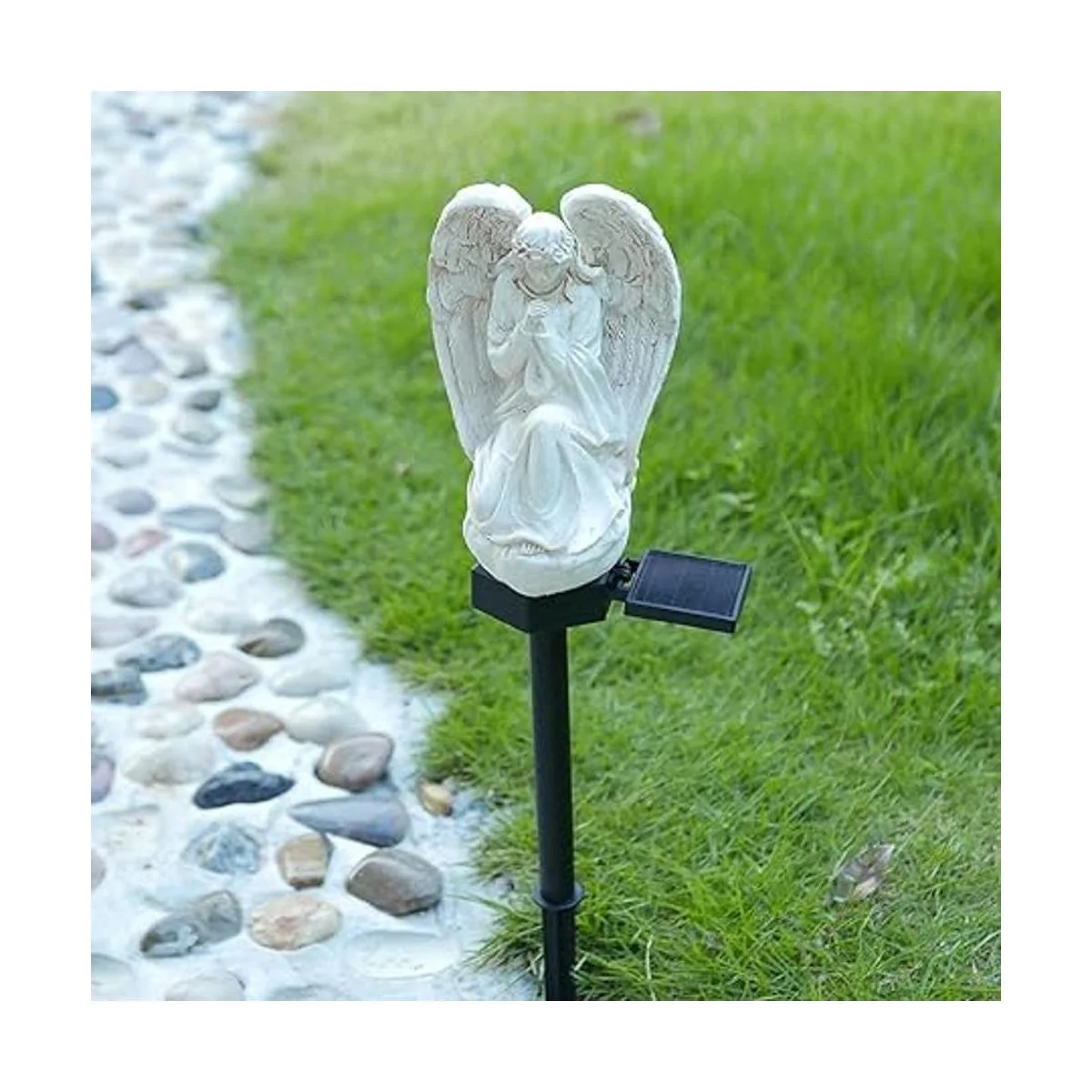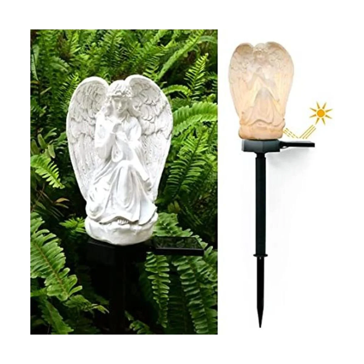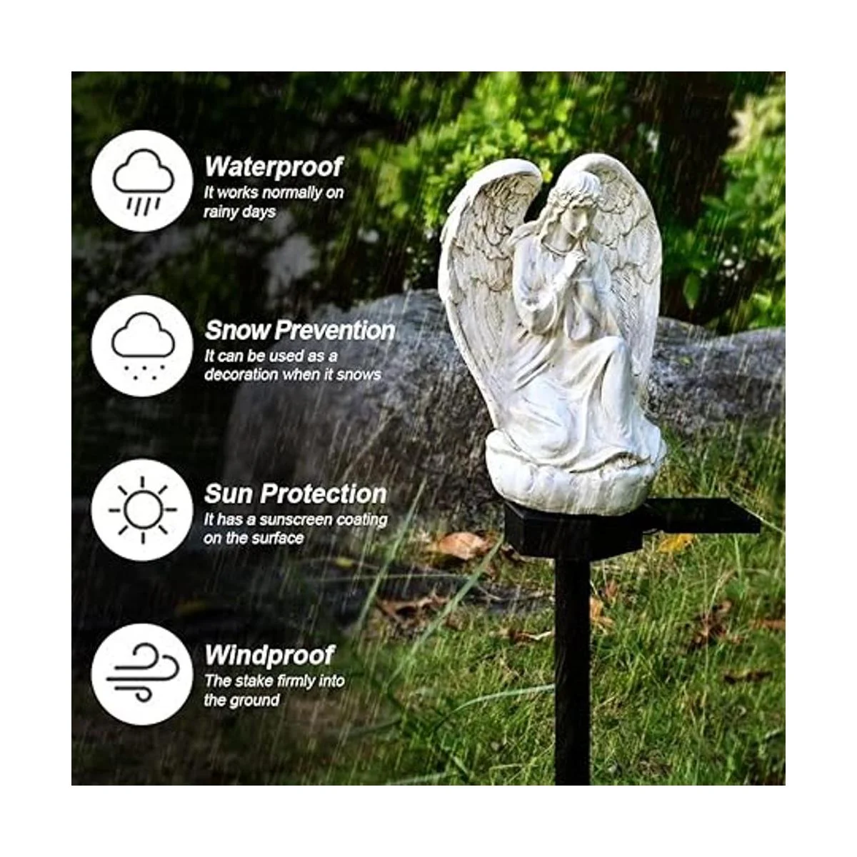 Decoración solar de jardín de ángel guardián, luz de estaca Juliahestia para patio, exterior, césped, porche, decoración de tumbas para cementerio, estatuas conmemorativas, figuras rezantes, adorno de Navidad impermeable para patio