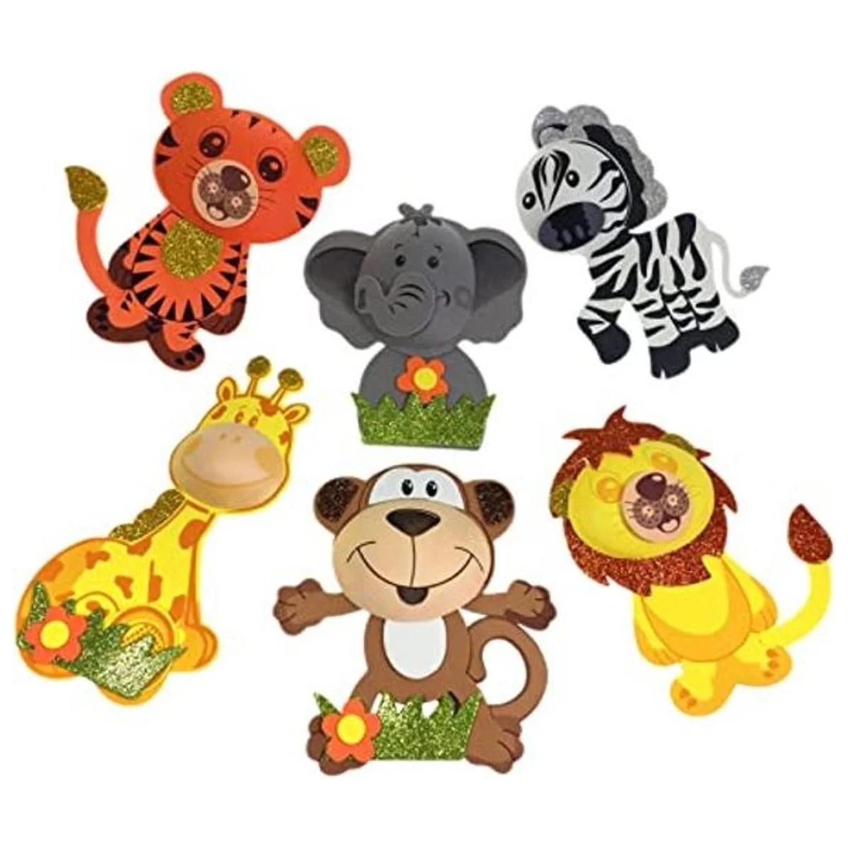 Decoraciones de animales, tamaño grande 8 pulgadas de altura, decoraciones de espuma para baby shower, fiestas de cumpleaños, regalos para niños, la parte posterior del caballete incluye adhesivo, juego de 12 unidades
