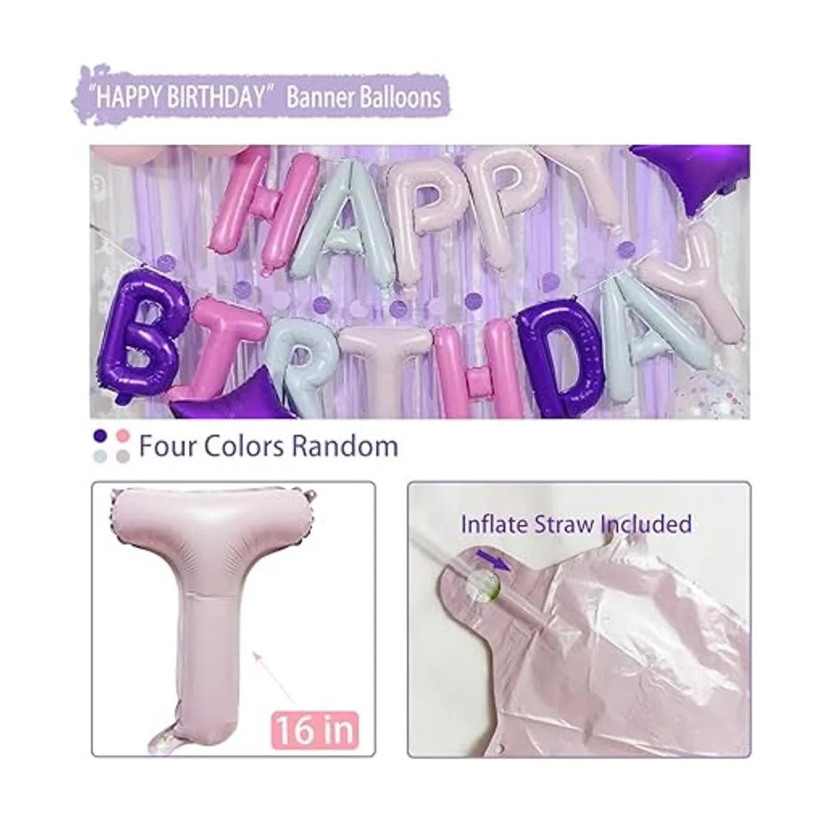 Decoraciones de cumpleaños rosas y moradas, suministros de fiesta con pancarta de feliz cumpleaños, globos de confeti, globos morados y rosados, adornos para tartas y serpentina de papel para mujeres y niñas, fiesta de cumpleaños