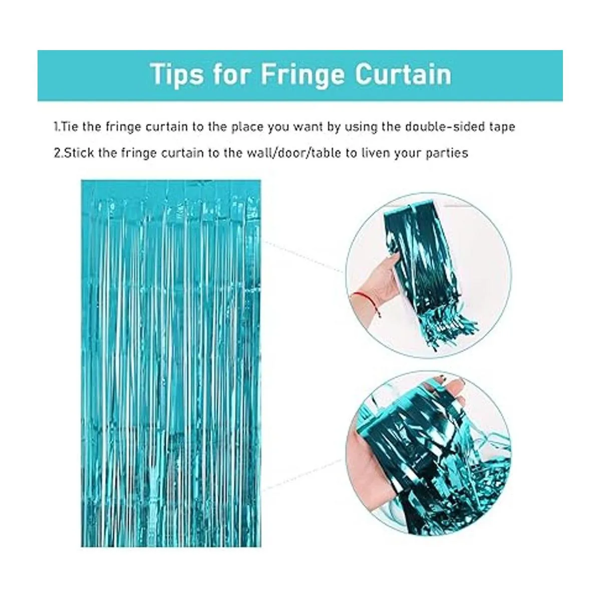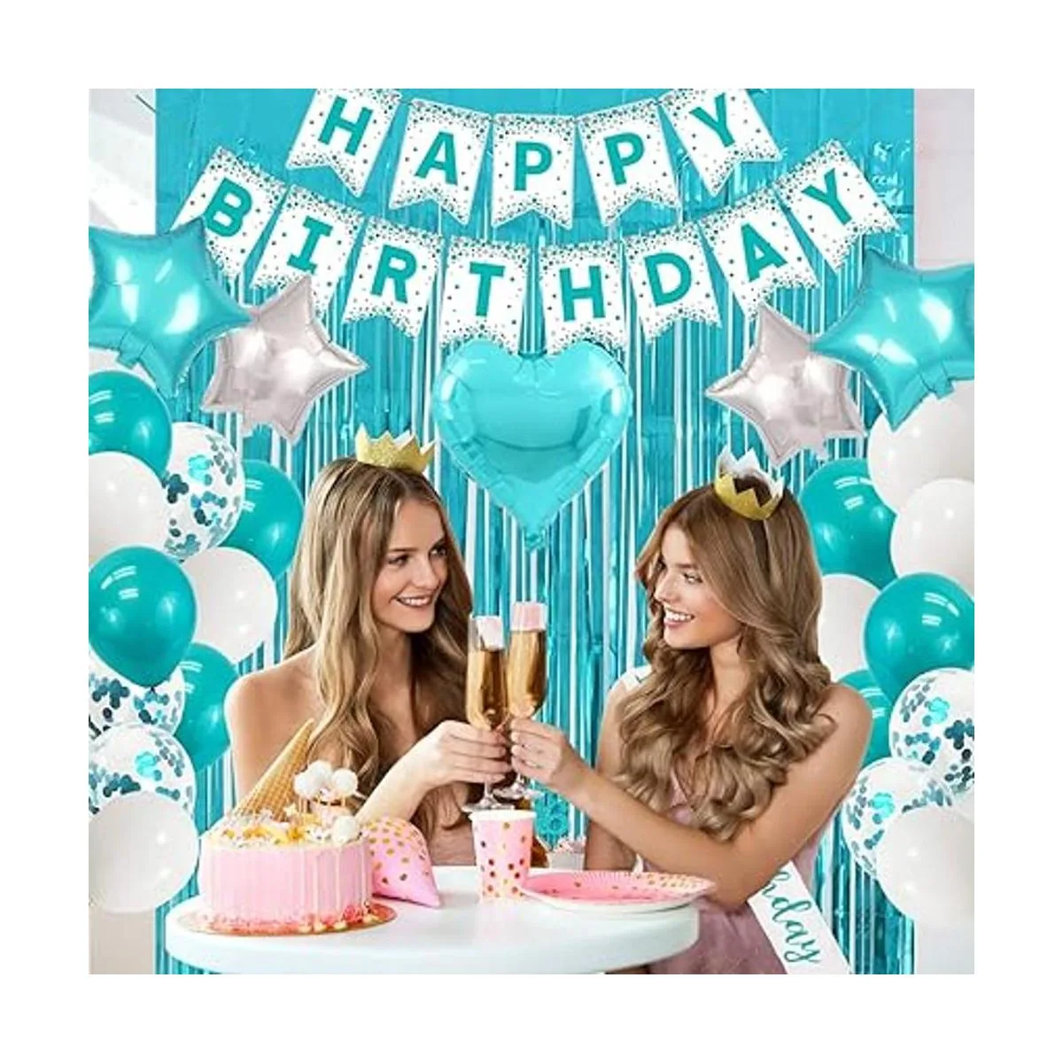 Decoraciones de feliz cumpleaños, decoraciones de cumpleaños verde azulado para niñas, pancarta de feliz cumpleaños, banda de feliz cumpleaños y pasteles, cortinas de fondo de fotos de fiesta de oropel metálico azul turquesa
