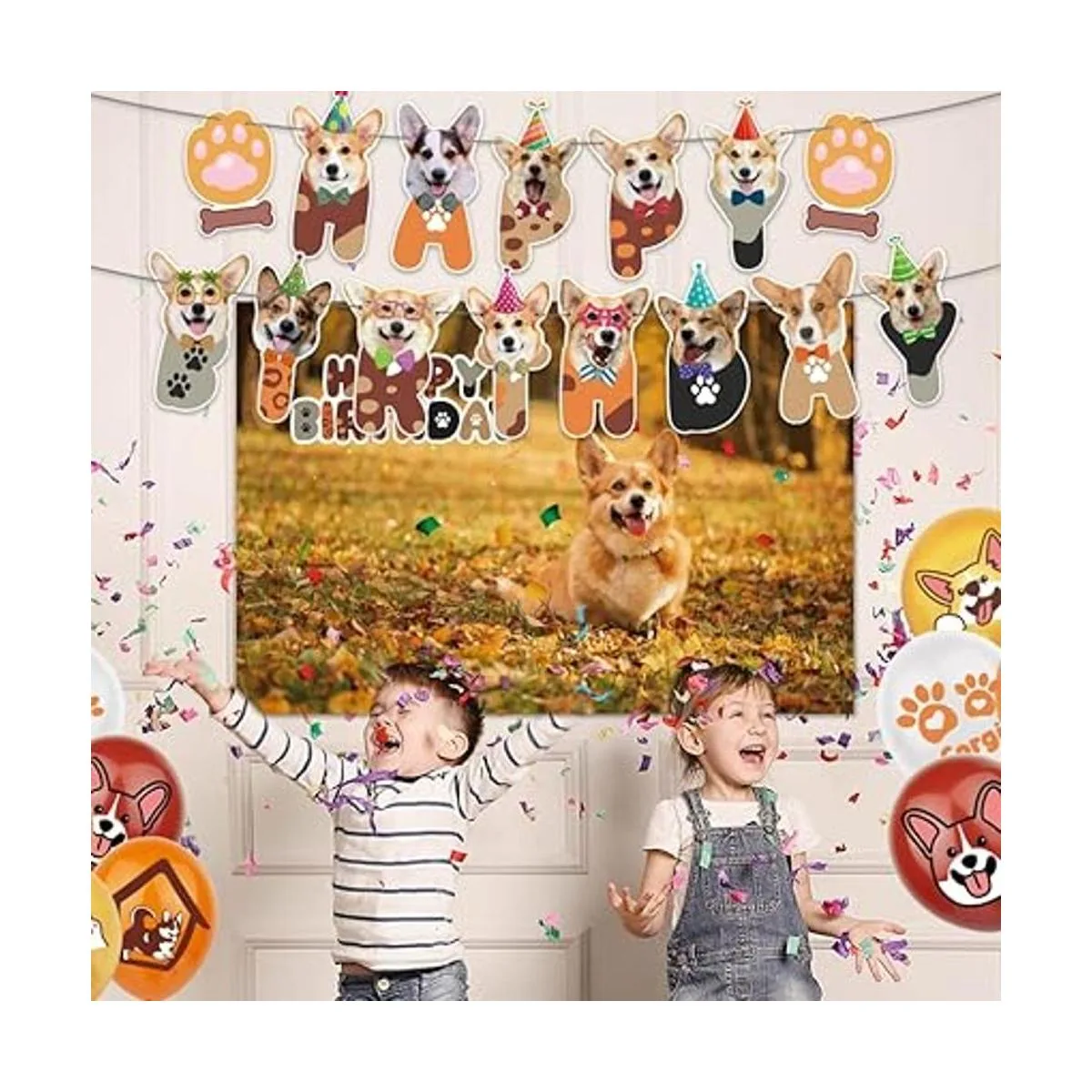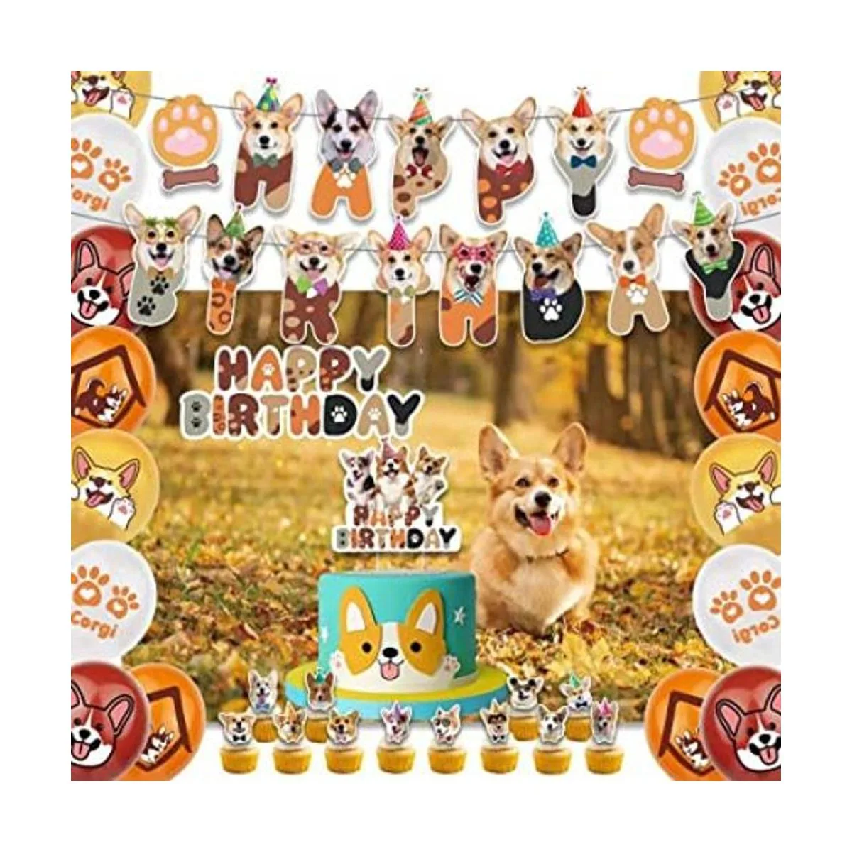 Decoraciones de fiesta Corgi telón de fondo de fotografía, lindo cartel temático de Corgi, globos, decoración de pasteles, decoración de cupcakes, kit de fiesta de mascotas para perros Corgi, suministros de fiesta de cumpleaños