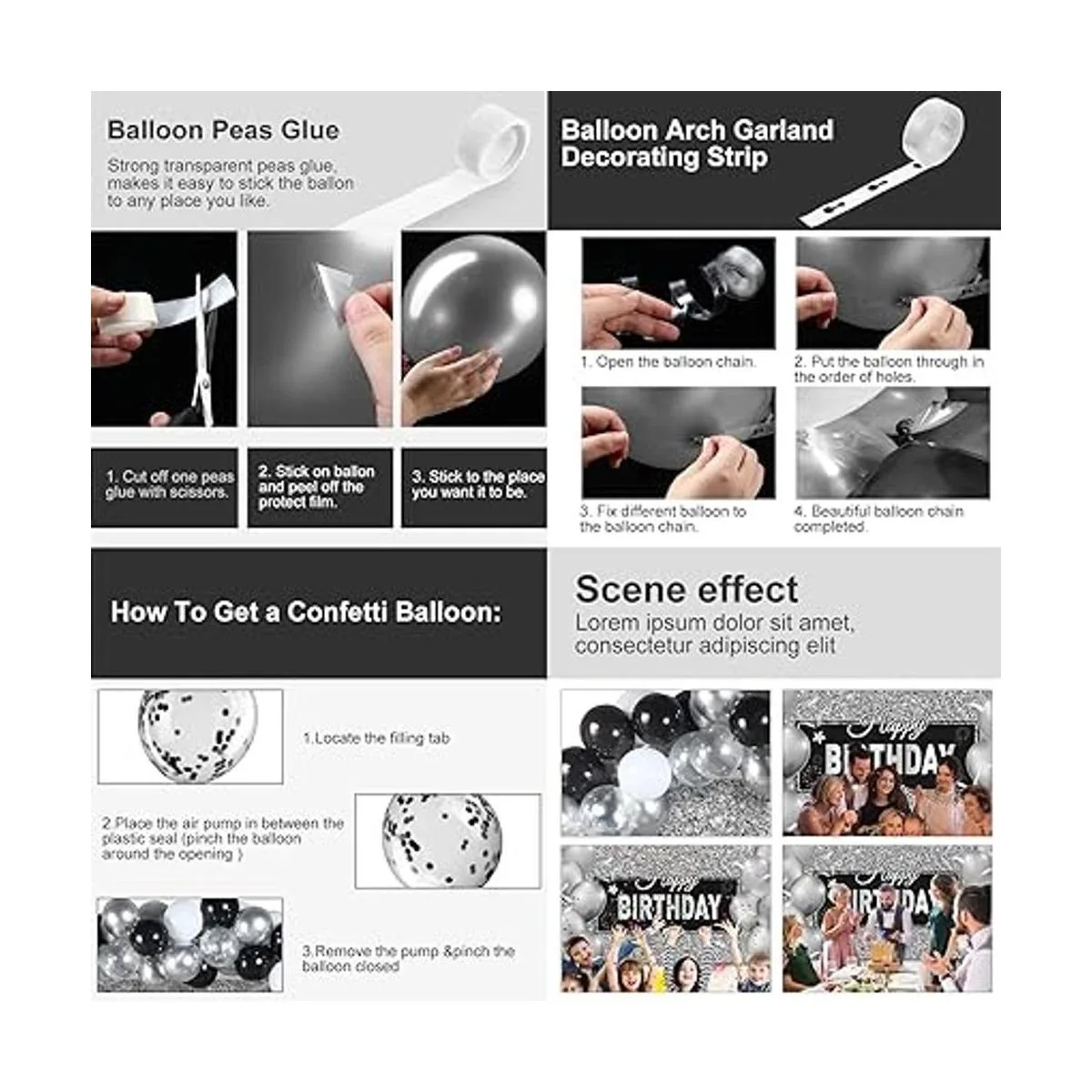 Fácil de montar: estos globos negros y plateados están decorados con pegamento y cadenas de globos, lo que te permite hacer arcos de globos más fácil y rápidamente, ahorrando tiempo y esfuerzo; puedes hacer tu fiesta de cumpleaños con tu familia y disfrutar de este maravilloso momento juntos