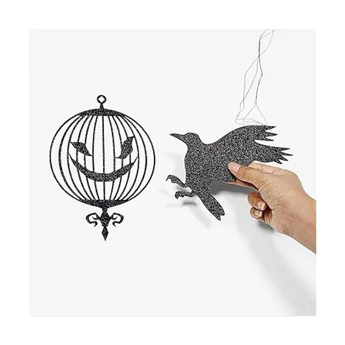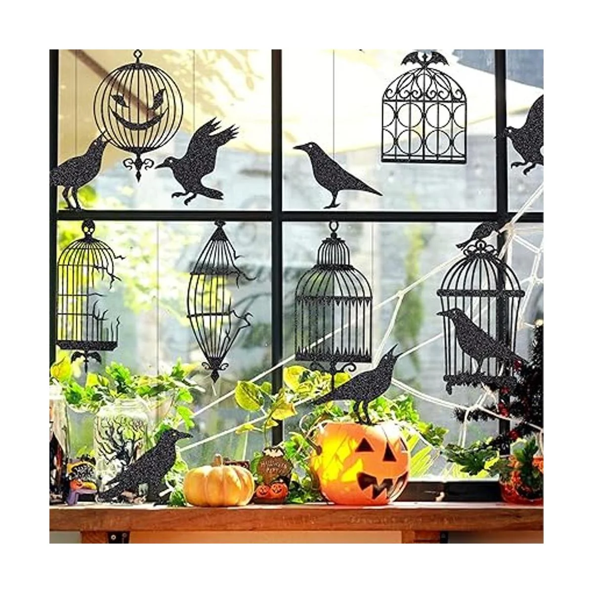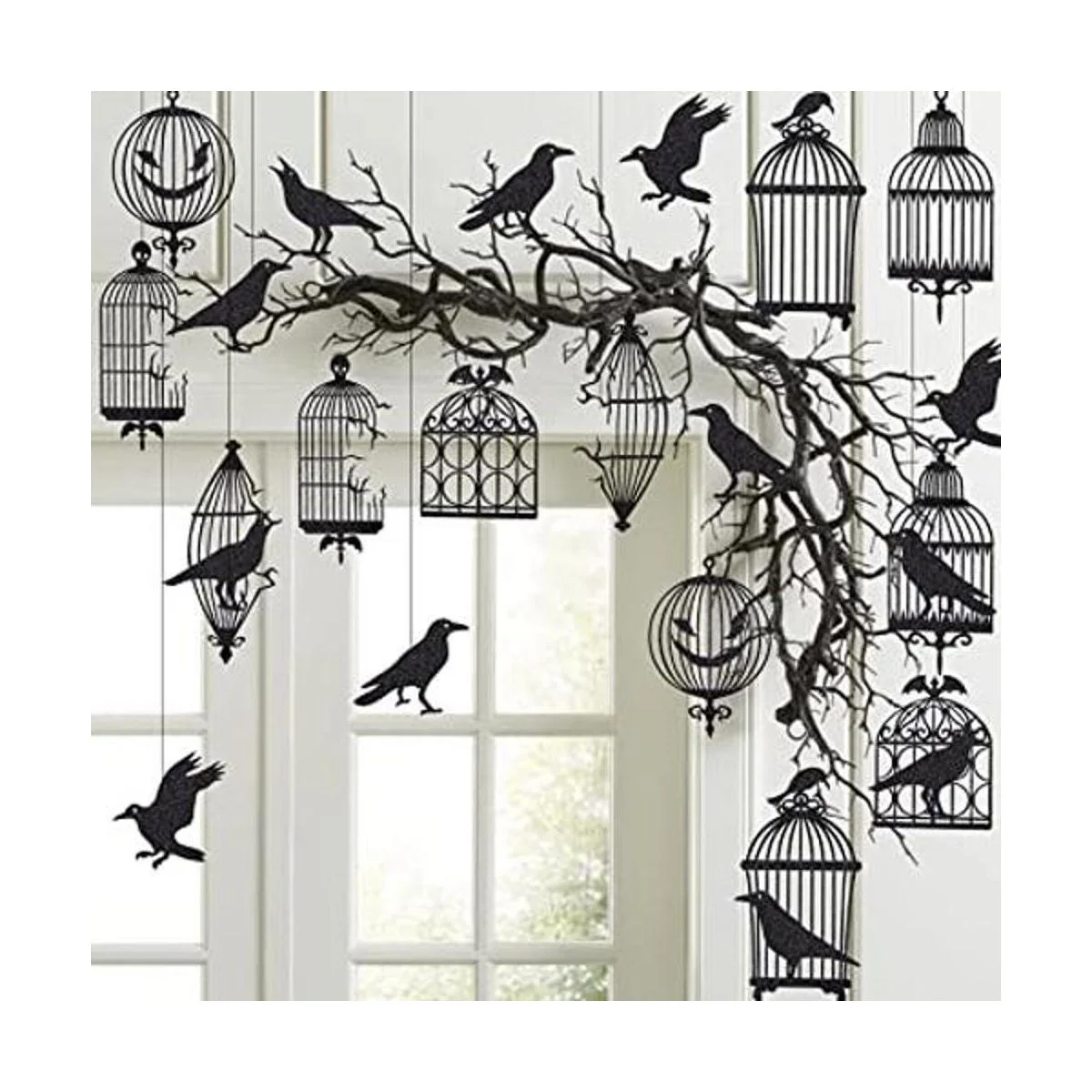 Diseño original de cuervo y jaula de animadora: estos cuervos y jaulas brillantes están hechos de papel ligero pero resistente. murales simples pero llamativos para traer un aterrador, misterioso y juguetón, ideal para Halloween, cumpleaños gótico, baby shower, fiestas de disfraces horribles.