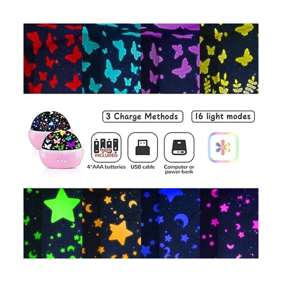 Decoraciones de mariposas, juguetes para niños de 3 a 8 años, proyector de estrellas de 16 colores, luz nocturna, suministros de fiesta de mariposas, decoración de habitación, Navidad, Pascua, cumpleaños, regalos para niñas de 5 a 12 años