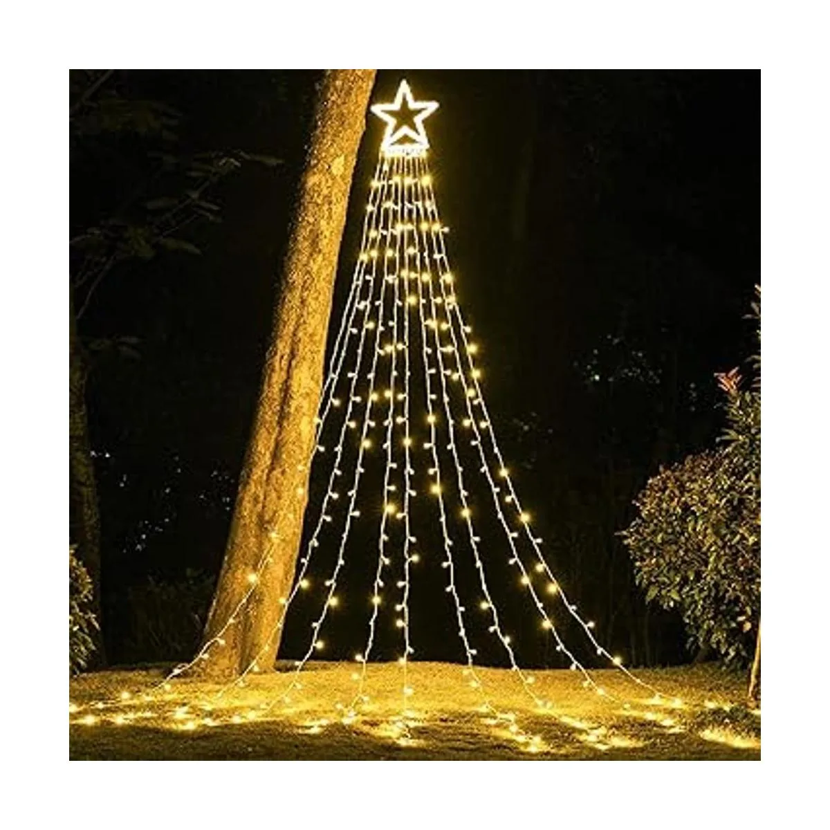 Decoraciones de Navidad, 320 luces LED de árbol de cascada para exteriores con estrella de 13 pulgadas, enchufable, impermeable, para Navidad, Año Nuevo, vacaciones, fiesta, patio, decoración blanco cálido