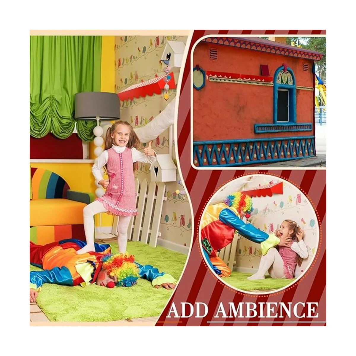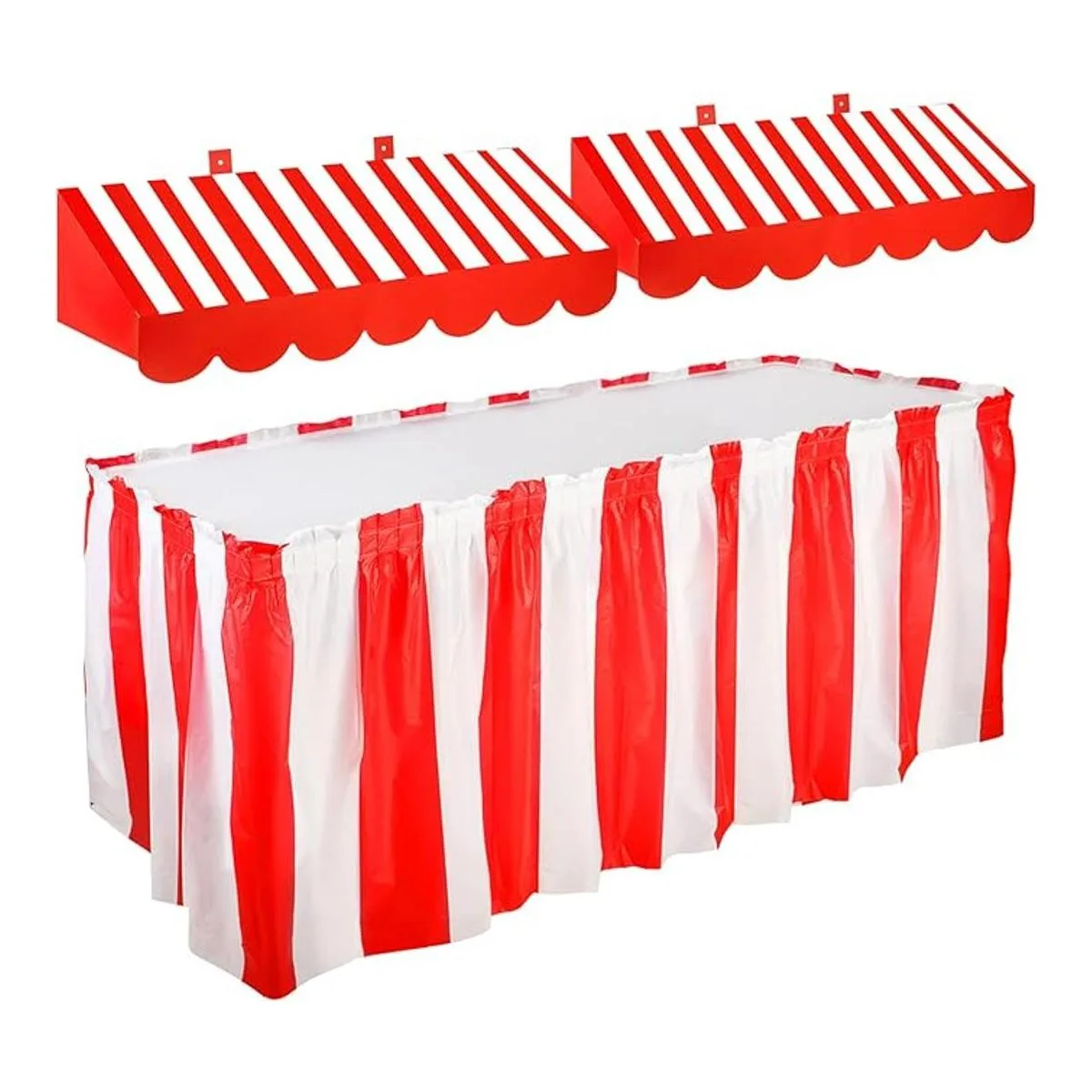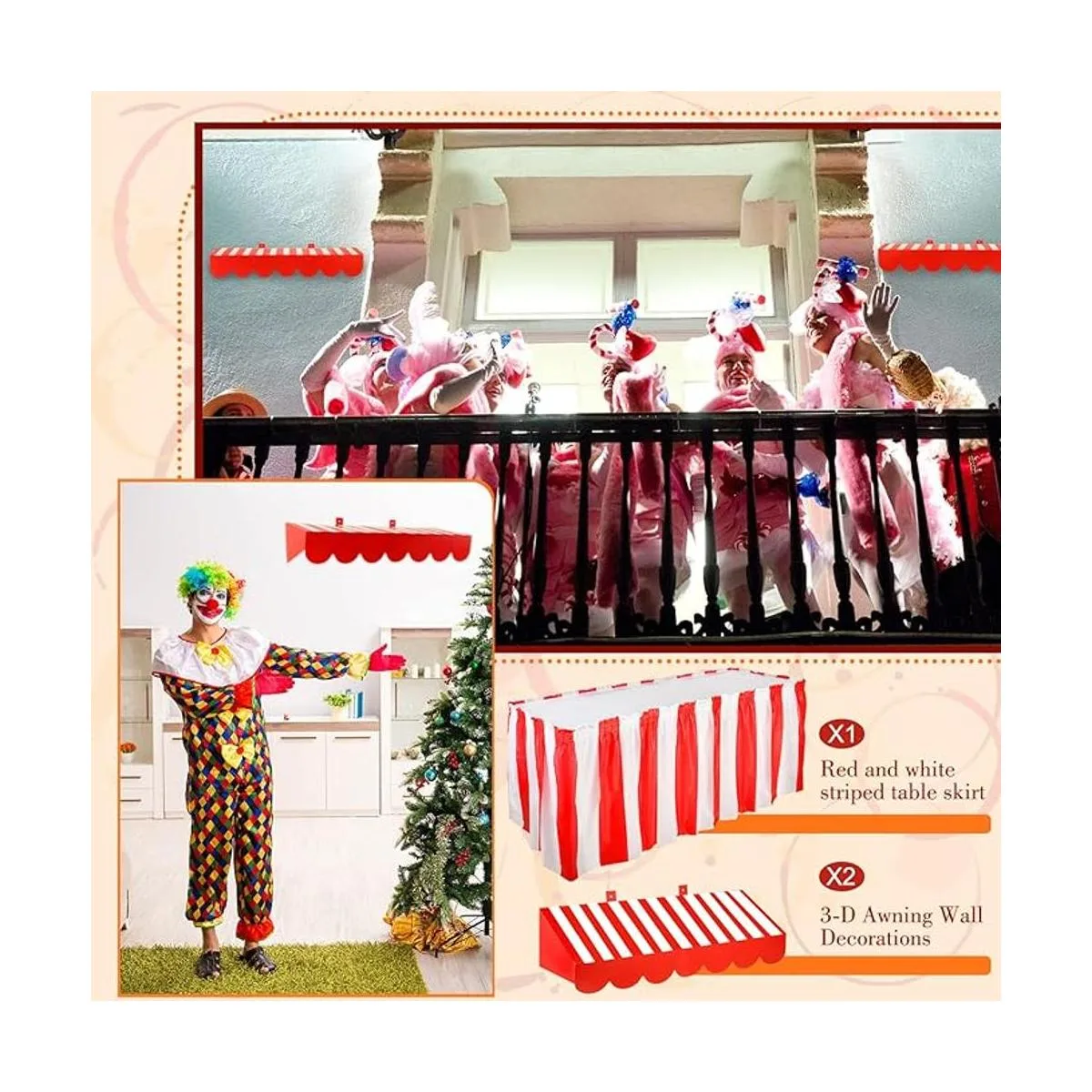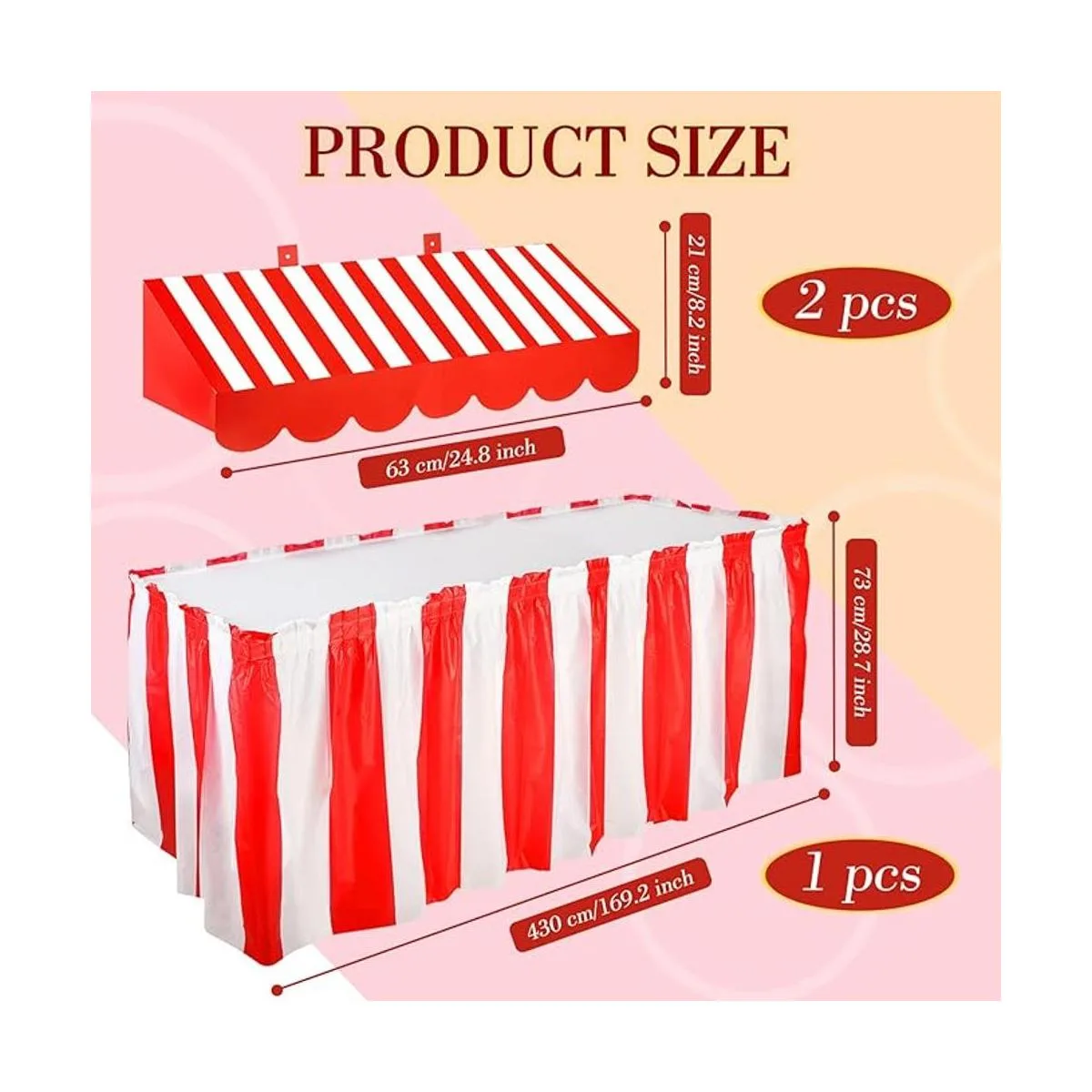 Detalles del tamaño: cada decoración de toldo de carnaval mide aproximadamente 24.8 x 9.1 in, cada falda de mesa a rayas mide aproximadamente 169.3 x 28.7 in, que es un llamativo centro de mesa de fiesta