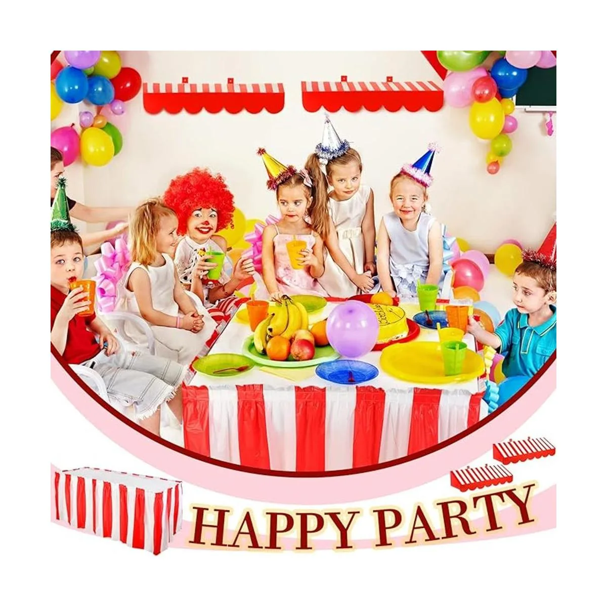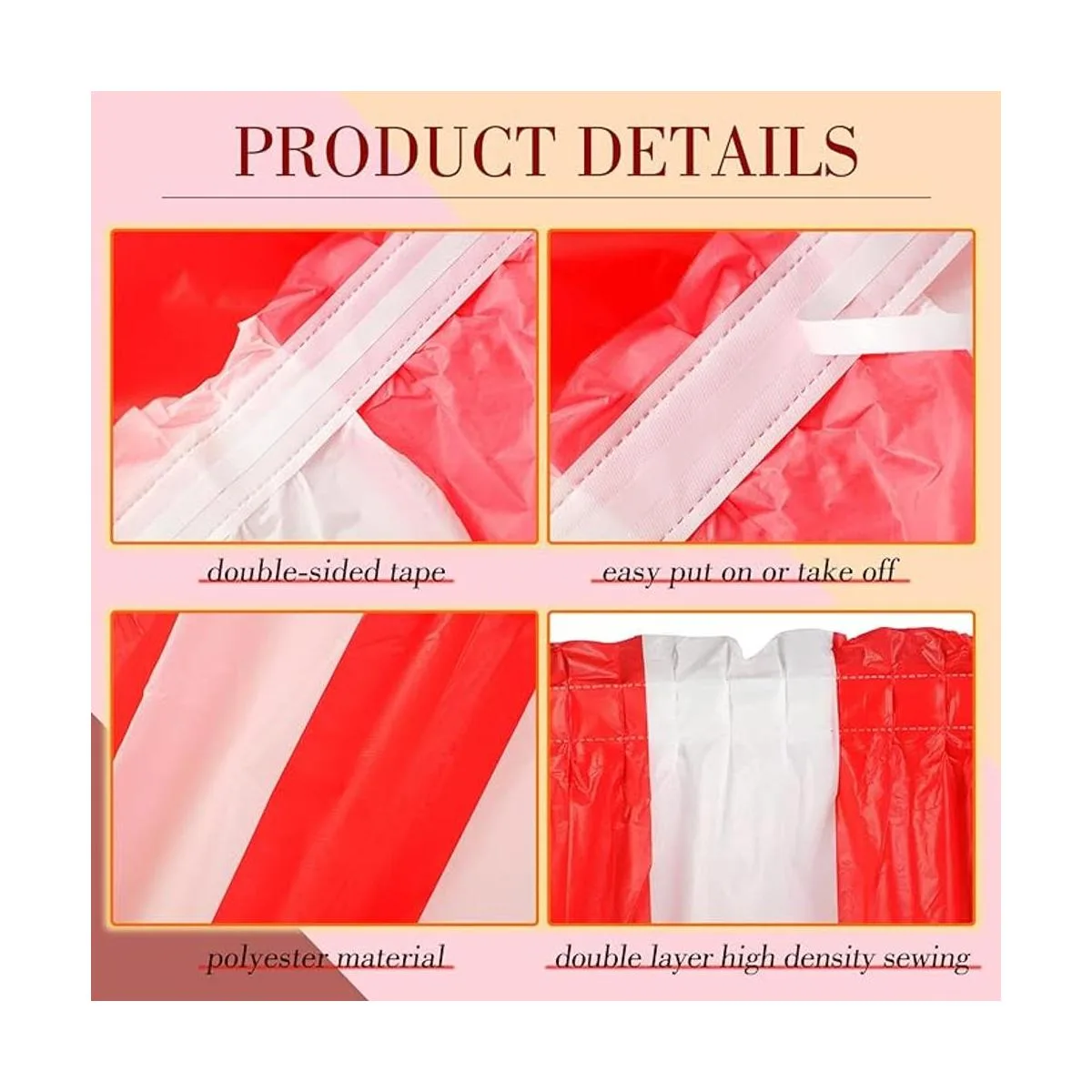 Diseño temático de carnaval: los toldos de fiesta temática de carnaval y la falda de mesa están impresos con rayas rojas y blancas, y diseñados con cinta de doble cara, por lo que son fáciles de usar; simplemente retira la parte superior y pégala en el borde del escritorio, que se puede aplicar de nuevo y no deja residuos pegajosos