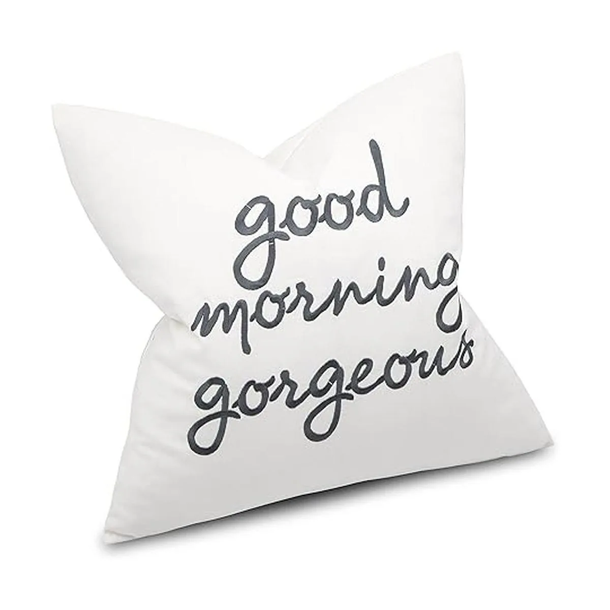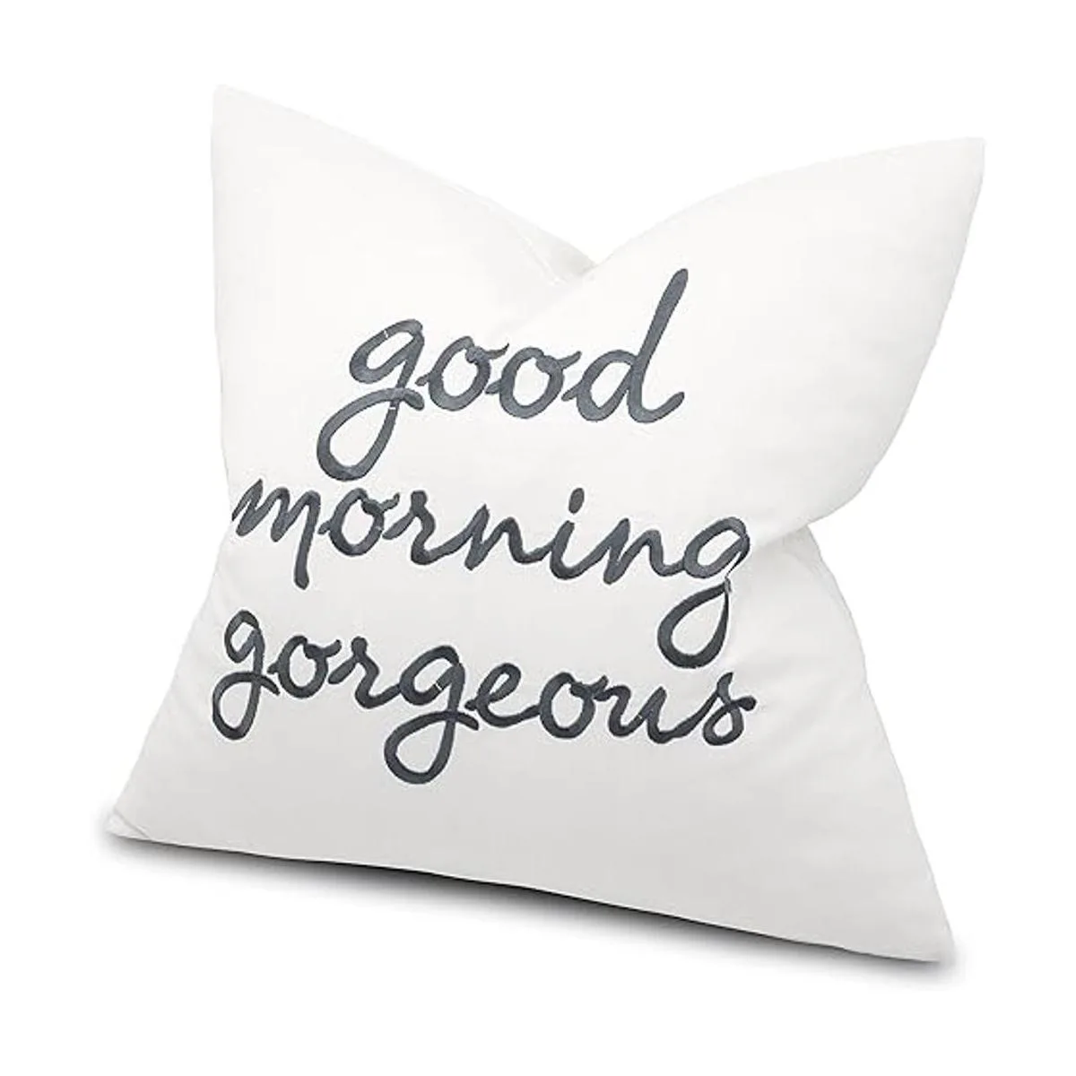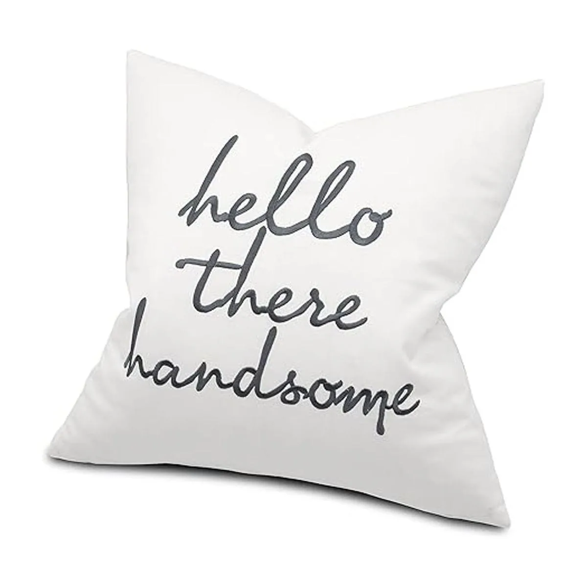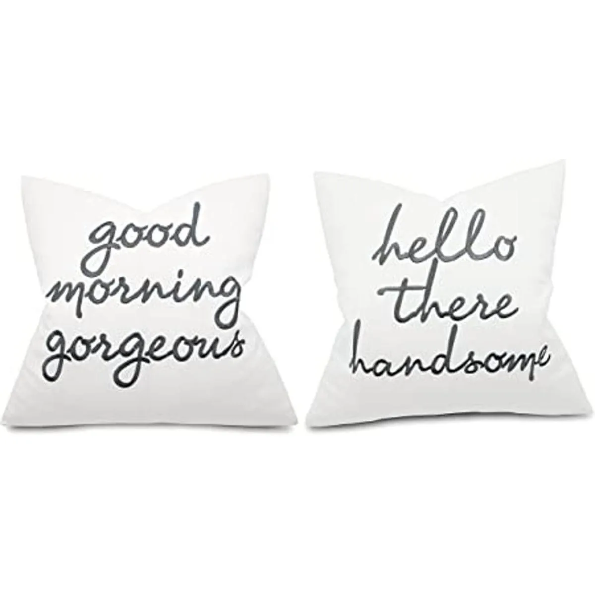 DecorHouzz fundas de almohada hola apuesto buenos días hermoso Conjunto de 2 almohadas bordadas cojín cobija funda de almohada decorativa funda de almohada Pareja de Novios l y Ella Aniversario Regalo 18 x 18 pulgadas, Algodón, Ivory, 18×18