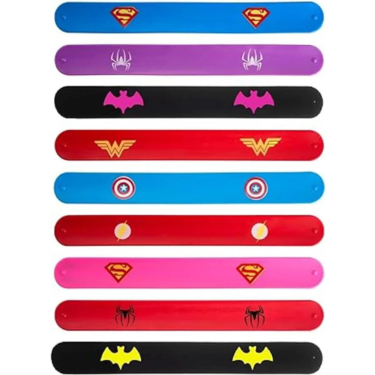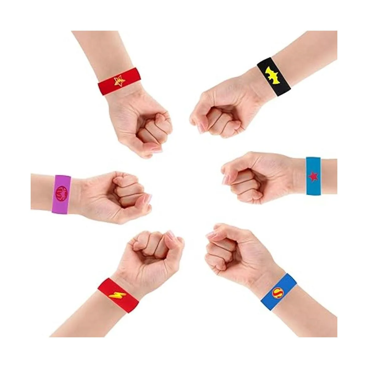 Pulsera de superhéroe perfecta para bailes de máscaras, Navidad, Halloween, fiesta de cumpleaños y fiesta de disfraces. Las pulseras Slap ayudarán a tus hijos a pasar un tiempo maravilloso. También adecuado para devolución de regalo de fiesta.