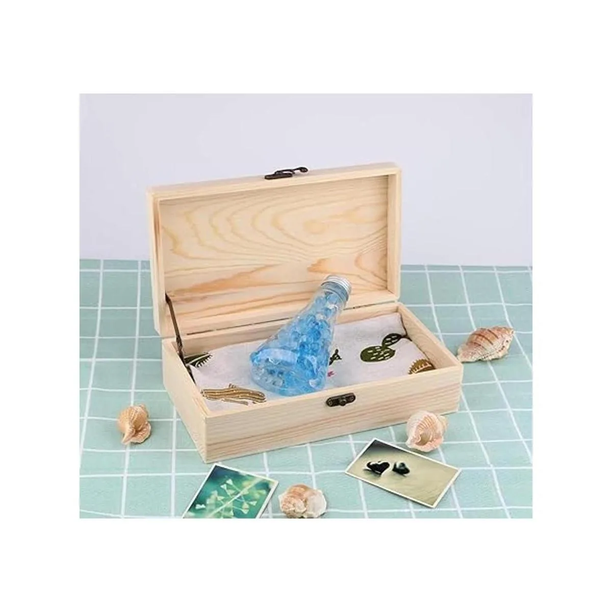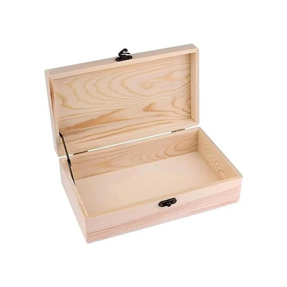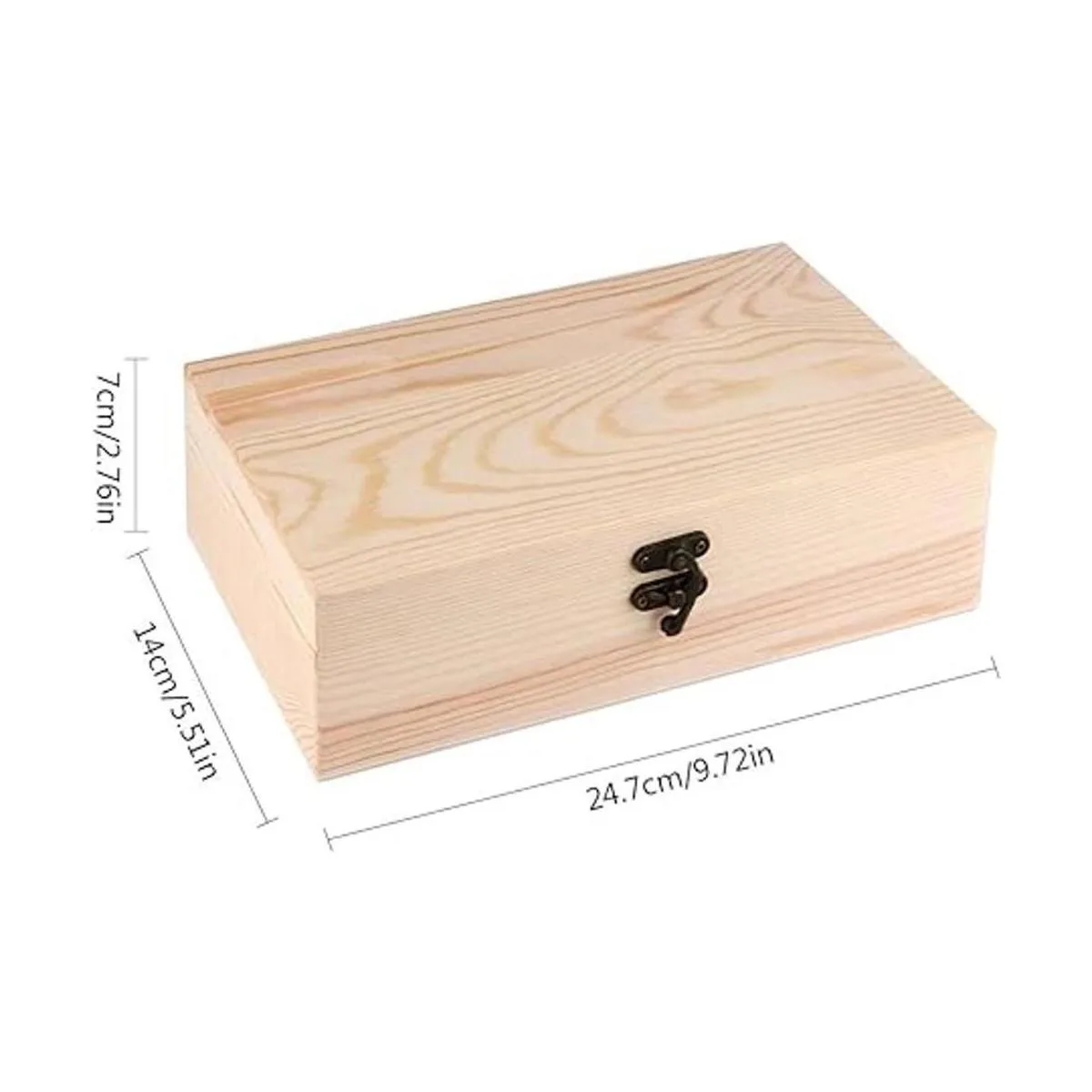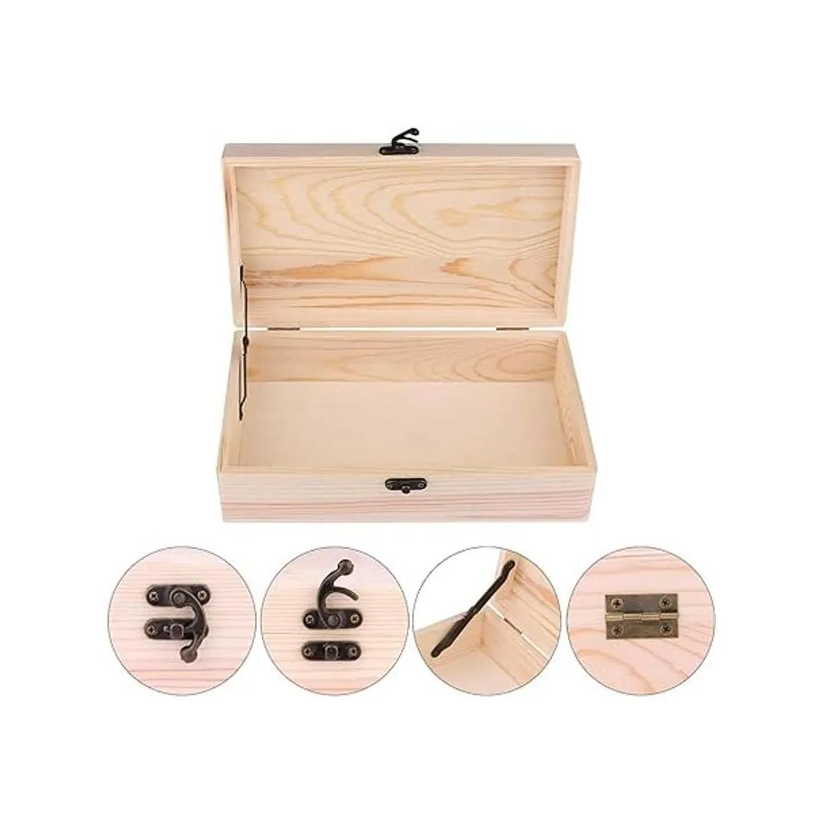Dedoot Caja de madera sin terminar con tapa con bisagras de 9.7 x 5.5 x 2.7 pulgadas, caja de recuerdo rectangular con cierre, caja de almacenamiento de madera para manualidades, decoración del hogar, joyería