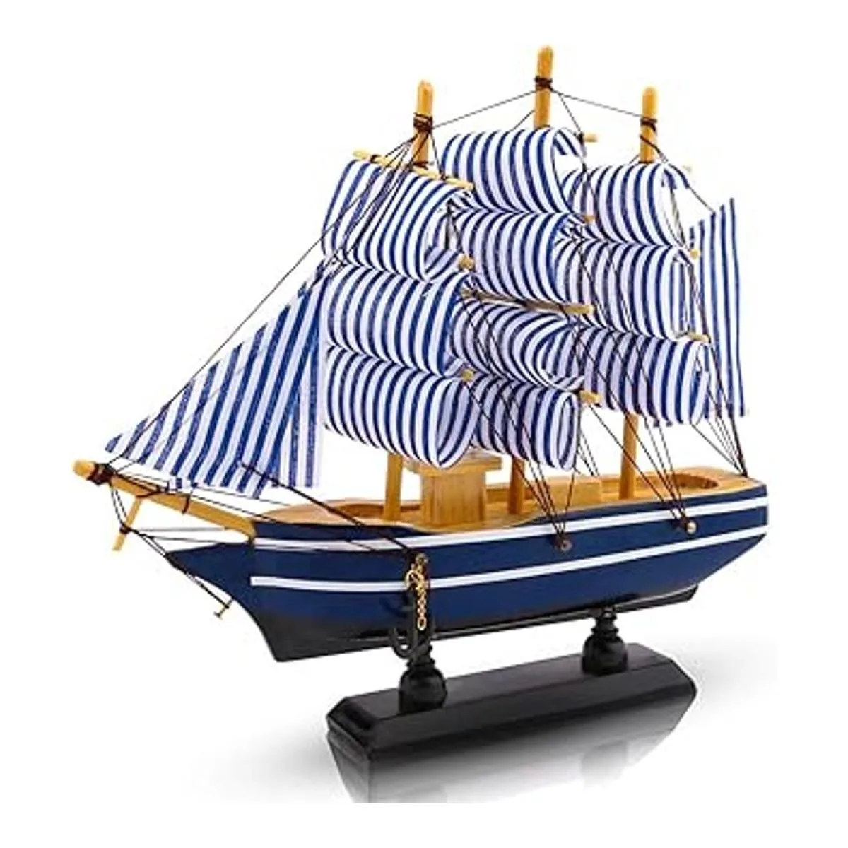 Pequeño modelo decorativo de velero de mesa exquisitamente fabricado con madera y lienzo de alta calidad.