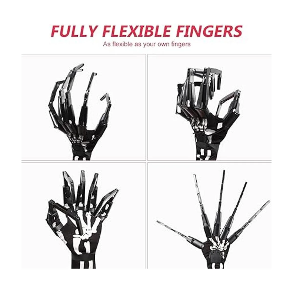 Materiales de alta calidad : la garra de Halloween se adapta a todos los tamaños de dedos y es fácil de poner y quitar, los dedos articulados de Halloween están hechos de plástico duradero, fuerte y ligero, es pequeña y portátil, no se daña ni rompe fácilmente.