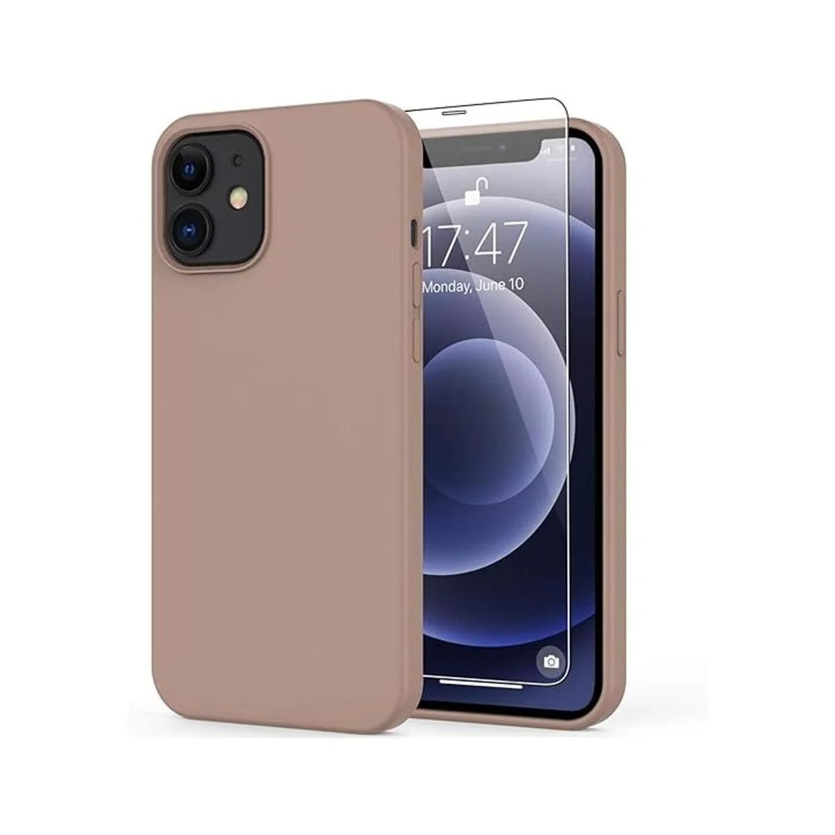 DEENAKIN Funda para iPhone 12, iPhone 12 Pro con protector de pantalla, funda de goma de gel de silicona suave y flexible, delgada, a prueba de golpes, funda protectora para iPhone 12 Pro de 6.1 pulgadas, color marrón elegante