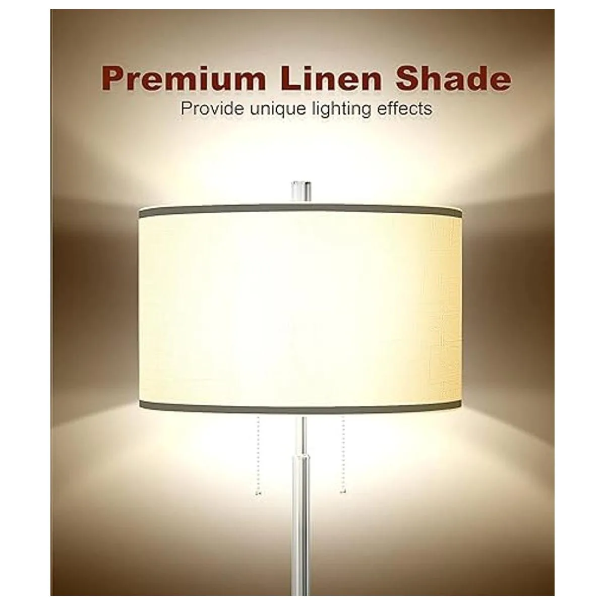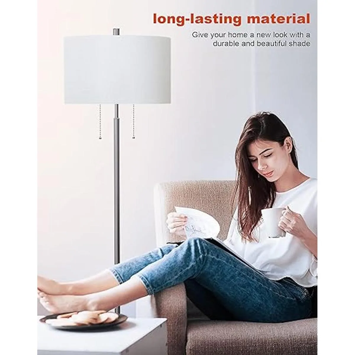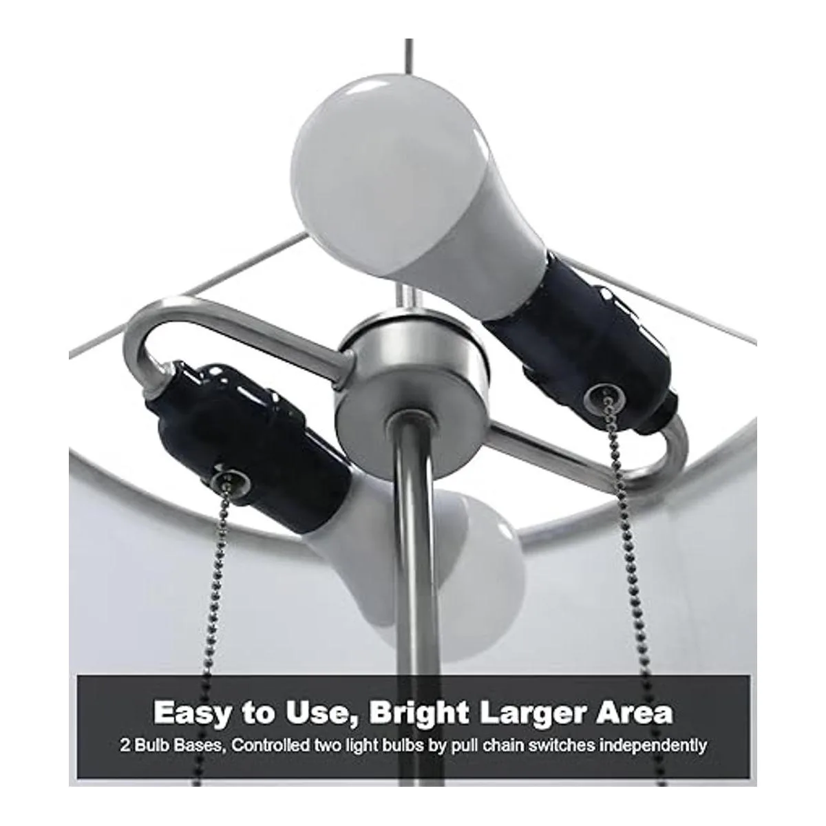 DEEPLITE Lámpara de pie moderna, lámpara de pie alta con 2 enchufes de bombilla para oficina, dormitorio, sala de estar, iluminación brillante, cuerpo de níquel cepillado, pantalla blanca